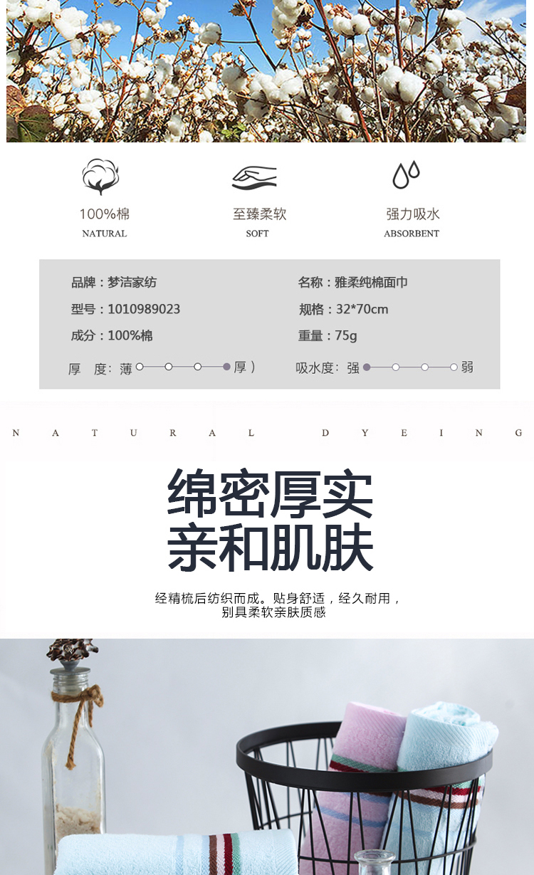 梦洁家纺 雅柔纯棉面巾 32*70cm 单位:条 粉色/蓝色(随机发货))