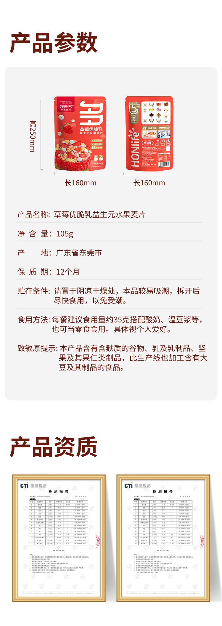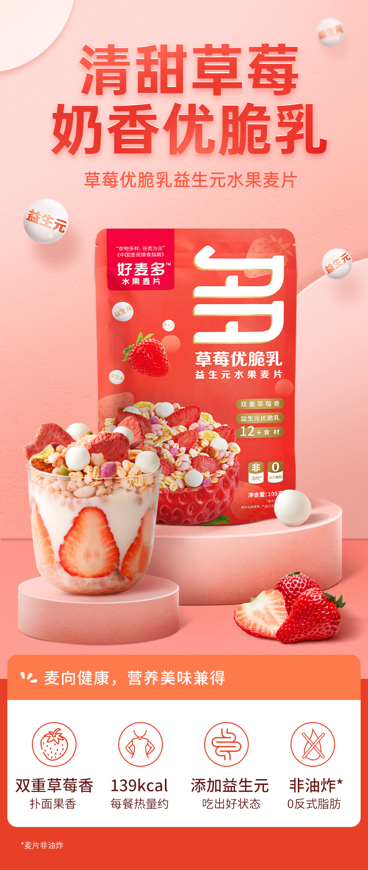 好麦多(HONlife)草莓优脆乳益生元水果麦片105g (单位:袋) 红色