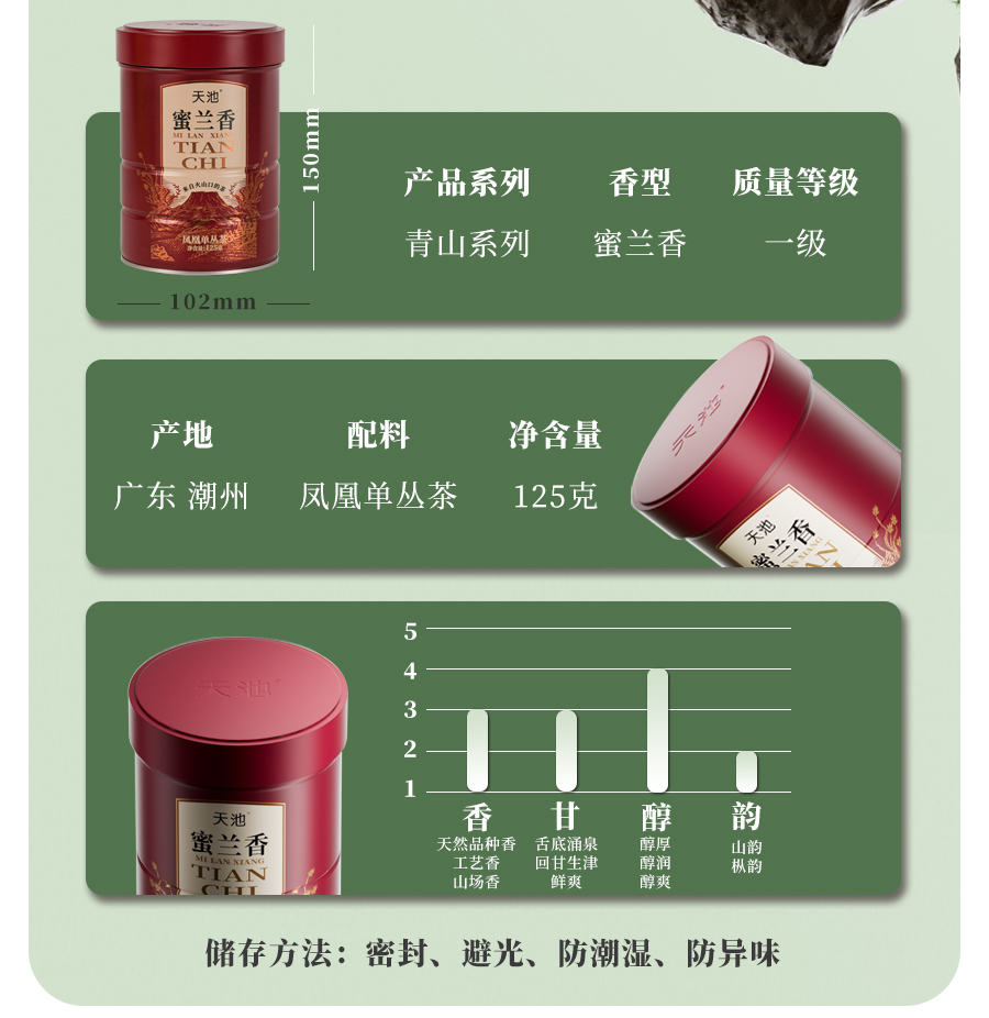 天池1392茶叶凤凰单枞蜜兰香潮州茶高山乌岽顶乌龙茶叶单丛茶米罐125g 单位:罐 红色