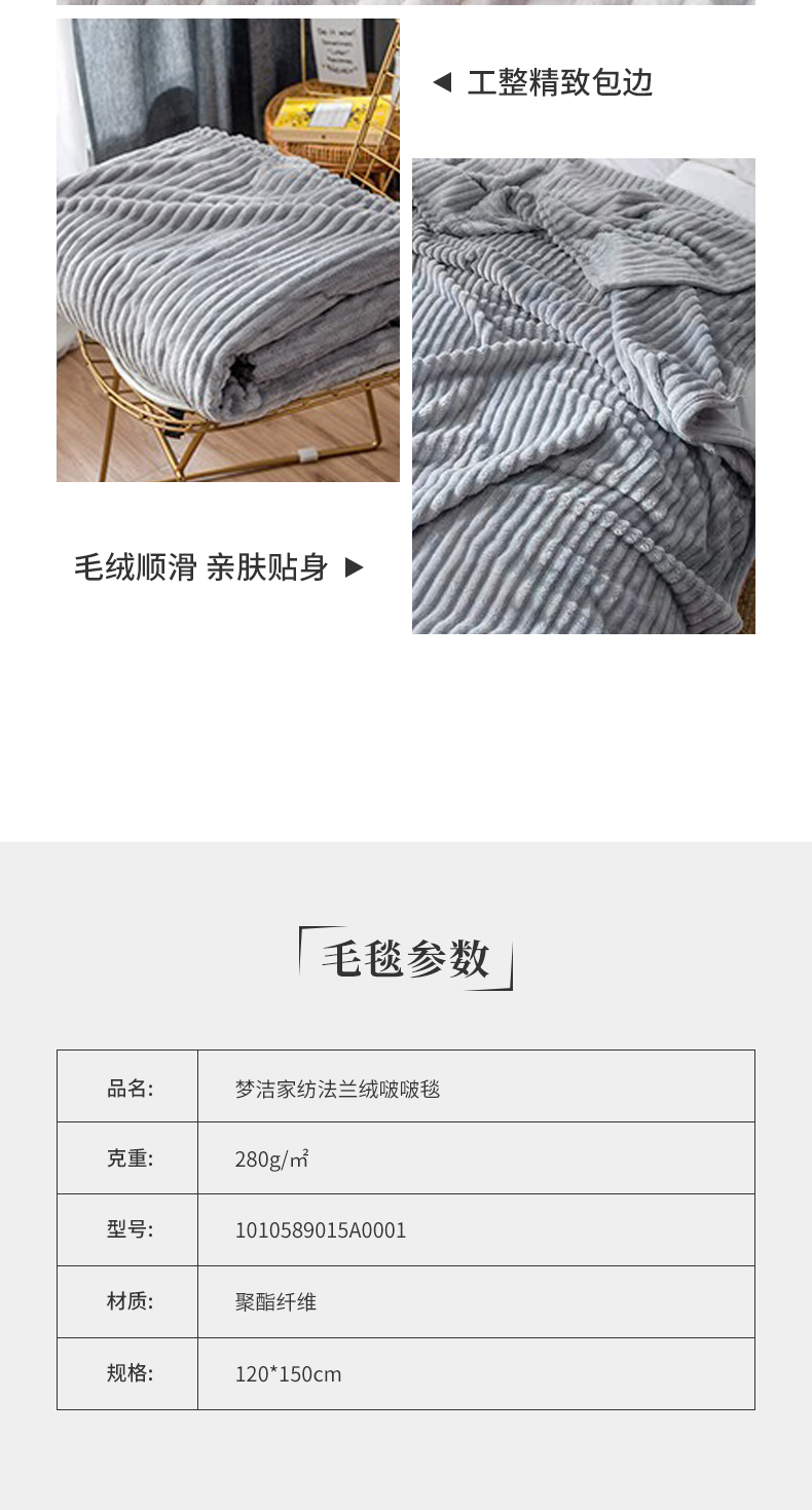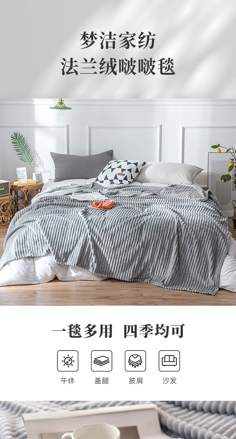 梦洁家纺 法兰绒啵啵毯 120*150cm 单位:条 浅灰色