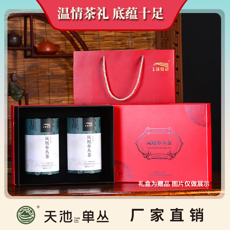 天池1392茶叶凤凰潮州单枞茶鸭屎香单丛茶乌龙茶高山乌岽单丛罐装125g*2罐 八仙礼盒装250g 红色
