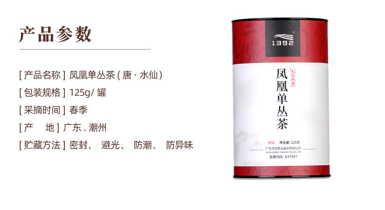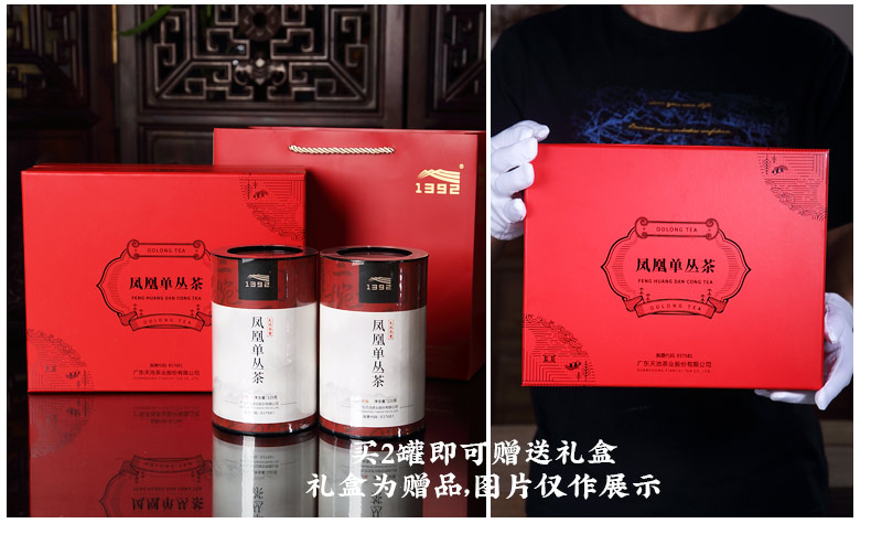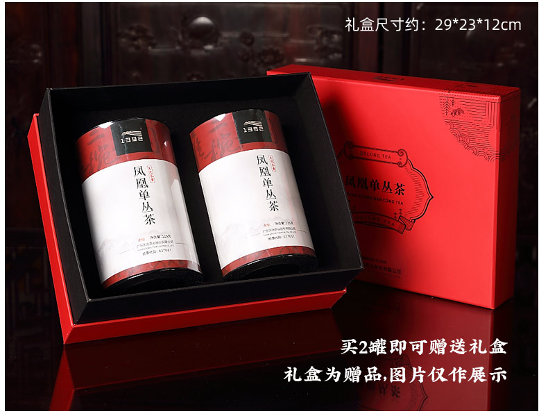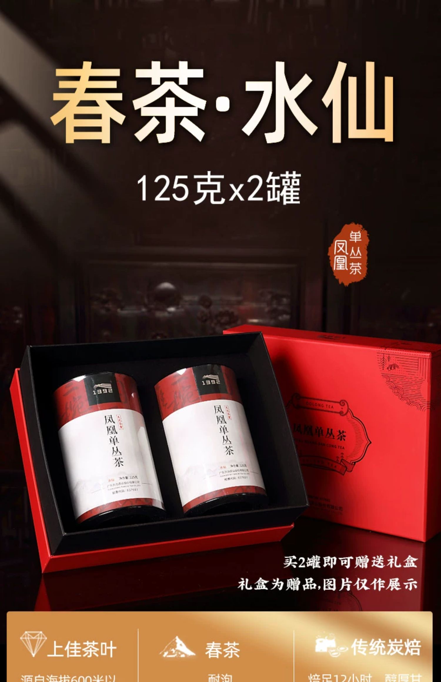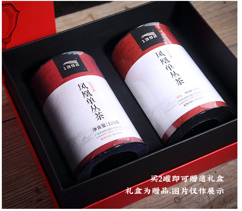 天池1392茶叶凤凰潮州单枞茶鸭屎香单丛茶乌龙茶高山乌岽单丛罐装125g*2罐 水仙礼盒装250g 红色