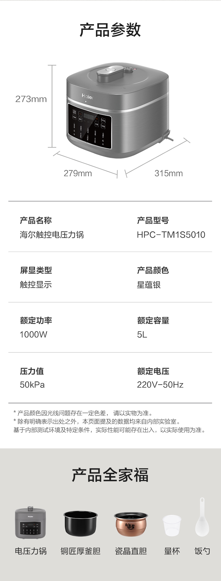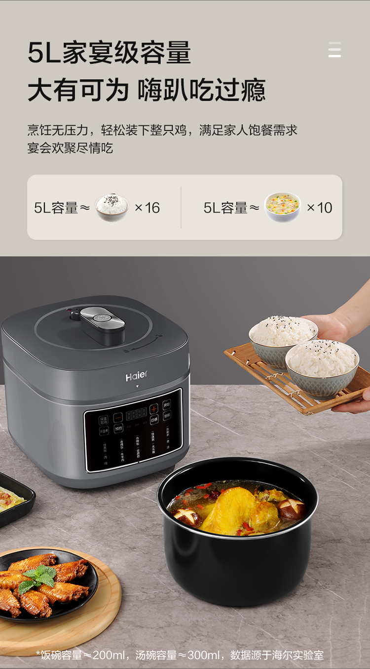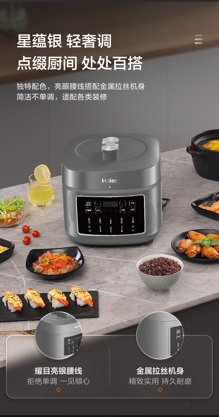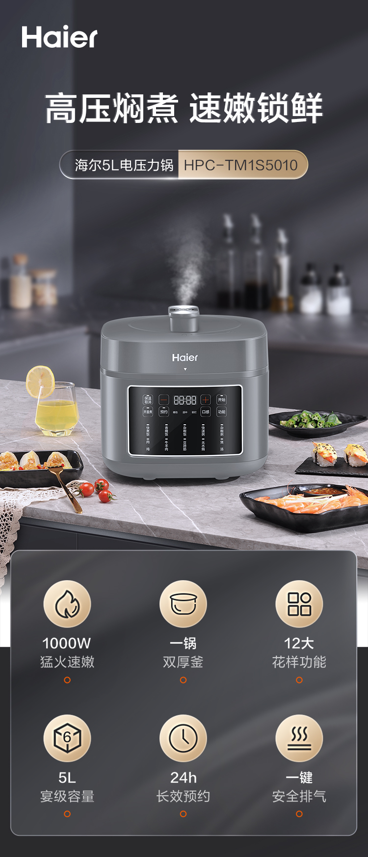 海尔5L容量电压力锅HPC-TM1S5010(台) 浅灰色