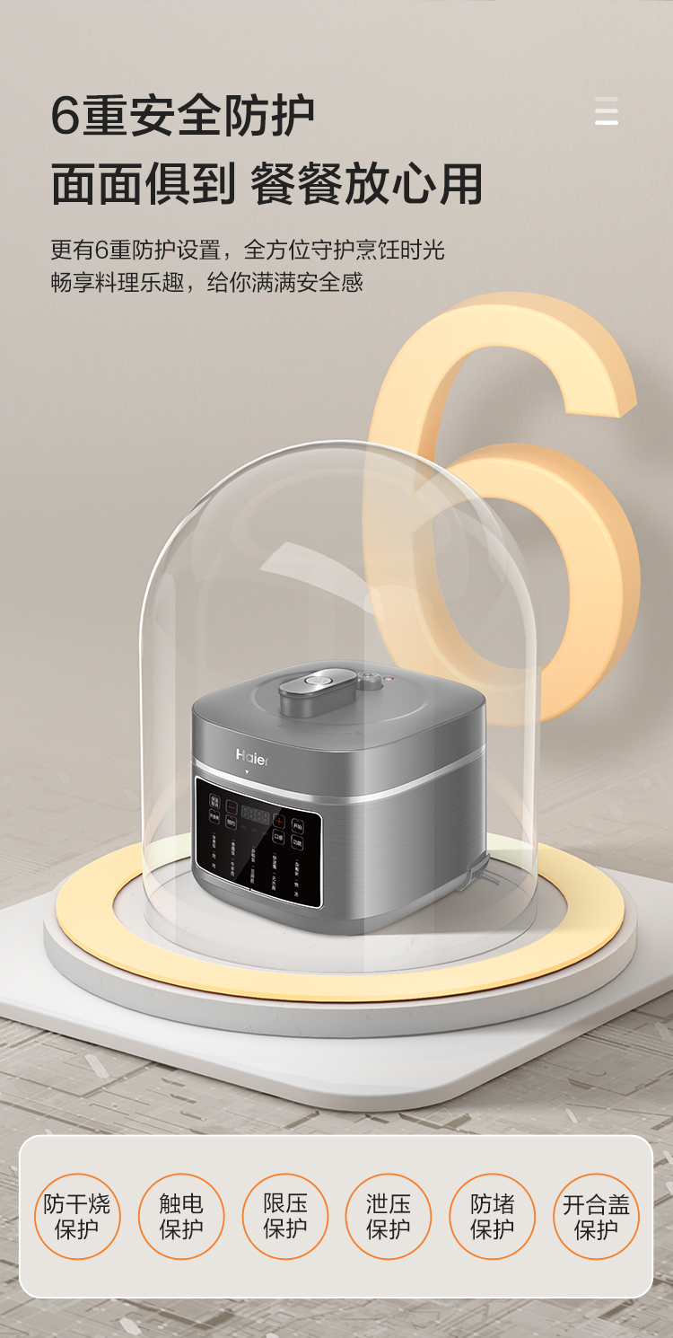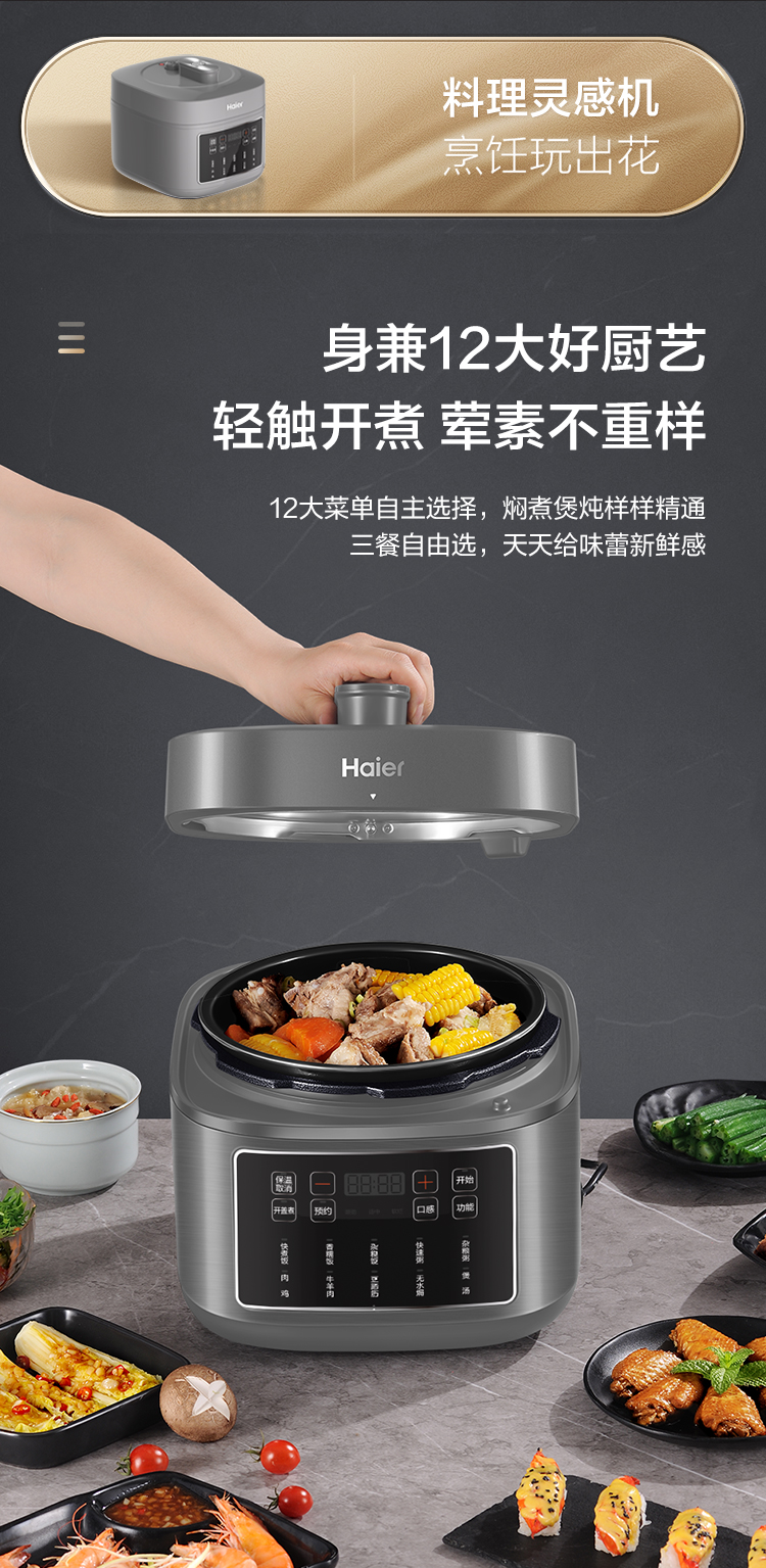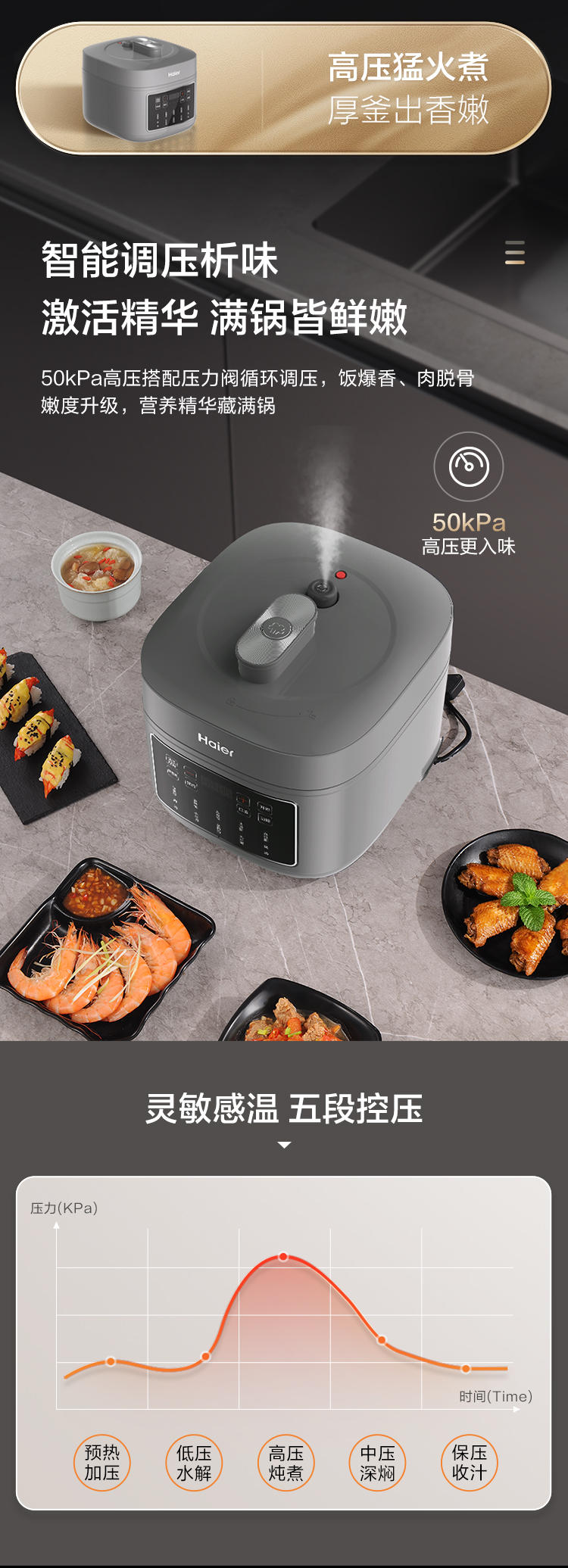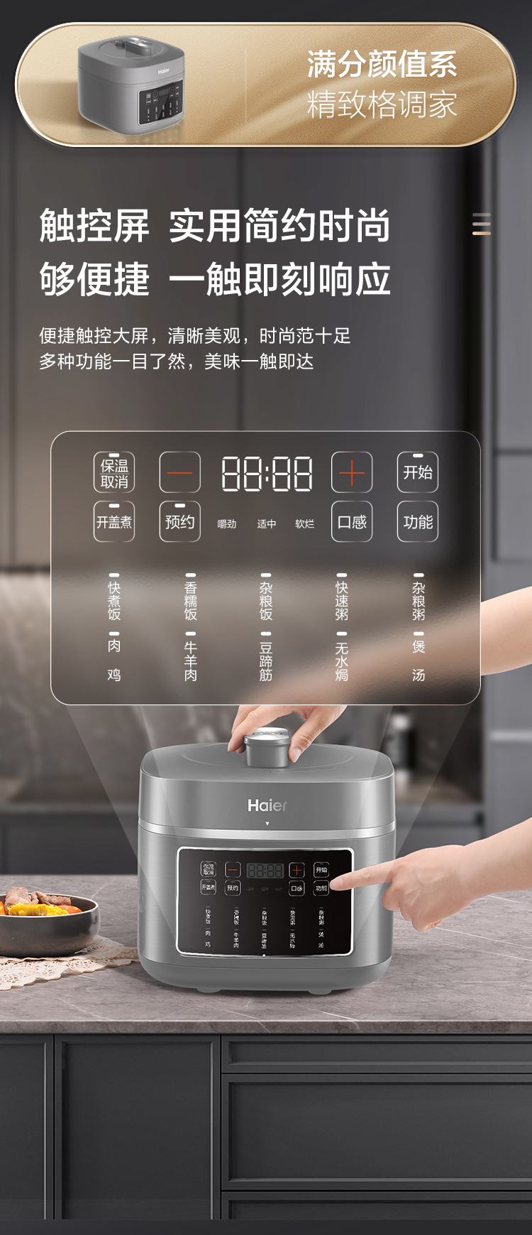 海尔5L容量电压力锅HPC-TM1S5010(台) 浅灰色