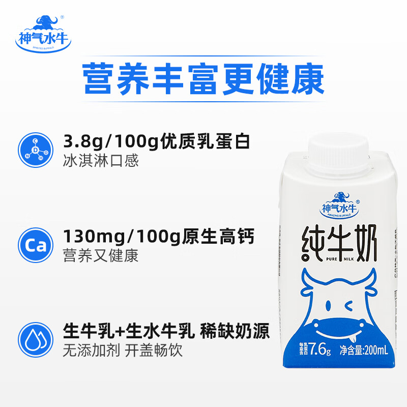 神气水牛纯牛奶 旋盖装 200ml*10盒*1箱 白色旋盖装 200ml*10盒*1箱 白色旋盖装