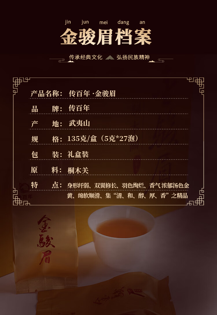 传百年金骏眉武夷山红茶135g CBN003 单位:盒 礼盒装