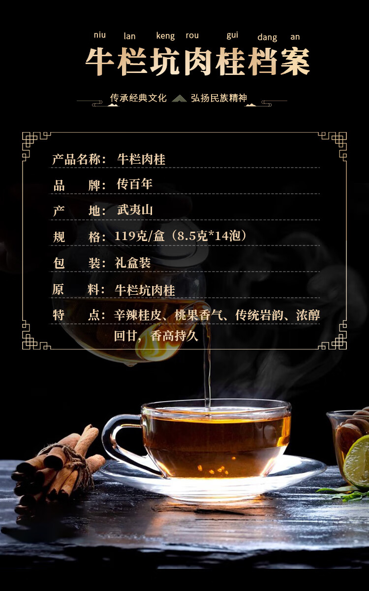 传百年 牛栏坑肉桂武夷岩茶119g CBN006 单位:盒 礼盒装