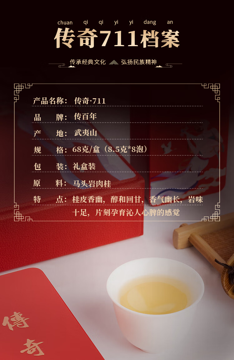 传百年 · 传奇711武夷岩茶马头岩肉桂 CBN007 单位:盒 礼盒装