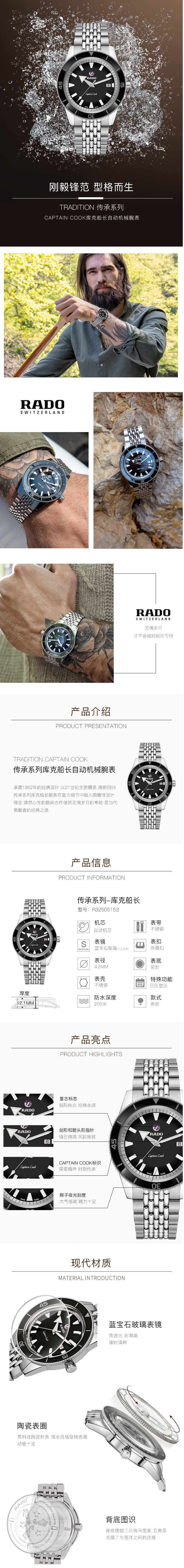 RADO雷达 传承系列 库克船长动力储存男士钢带机械腕表R32505153 单位:块 黑色