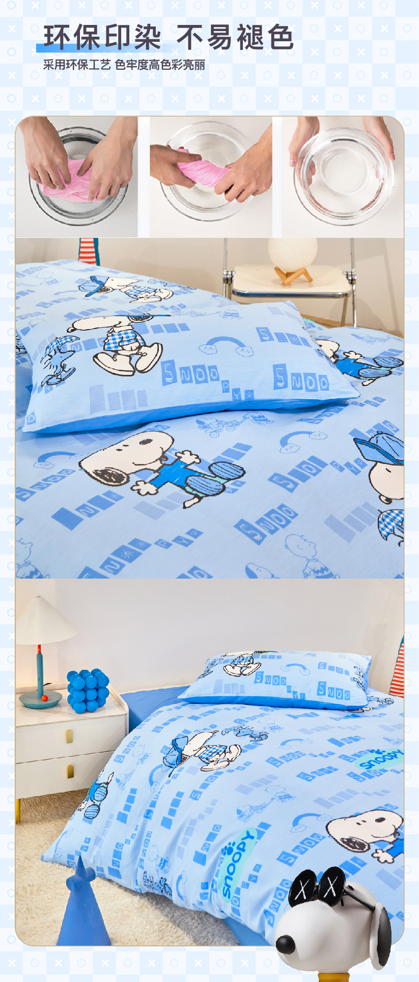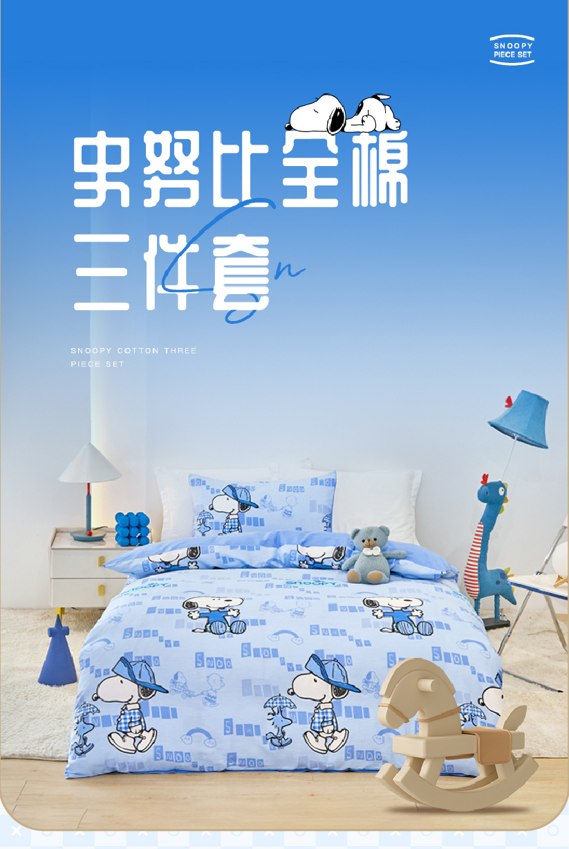 史努比·中纺鲁棉三件套 (花型:夏威夷之恋 ) 粉色
