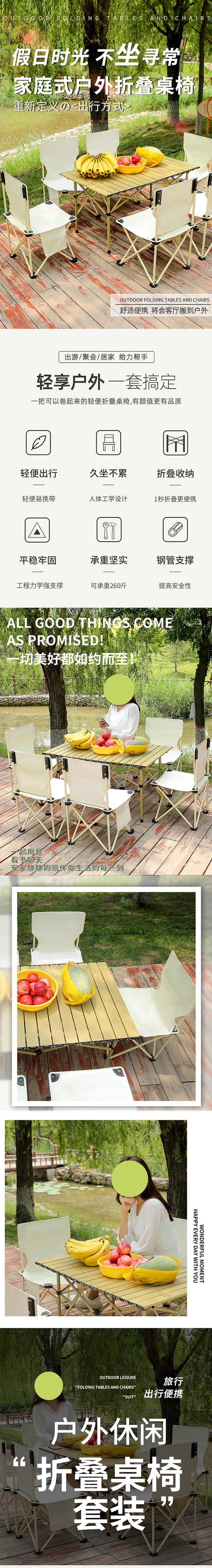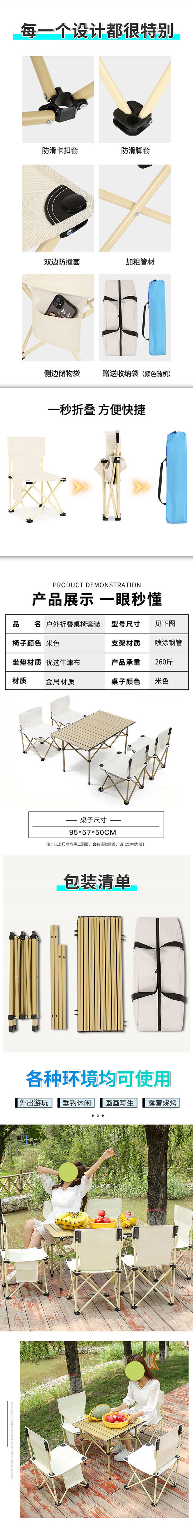 瑟石户外折叠套装(一桌四椅)单位:套 米色 商品色