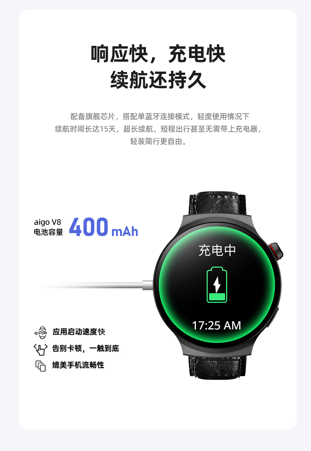 爱国者V8智能手表测心率血压血氧成人男NFC门禁多功能通话圆盘运动手表送礼 V8 黑色 (单位:个) 黑