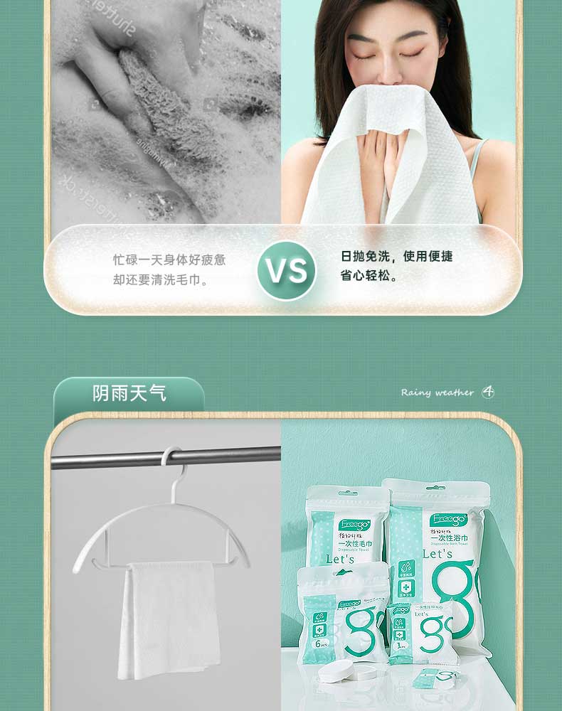 Freego旅行非压缩浴巾75*140cm(单位:包) 白色*6包