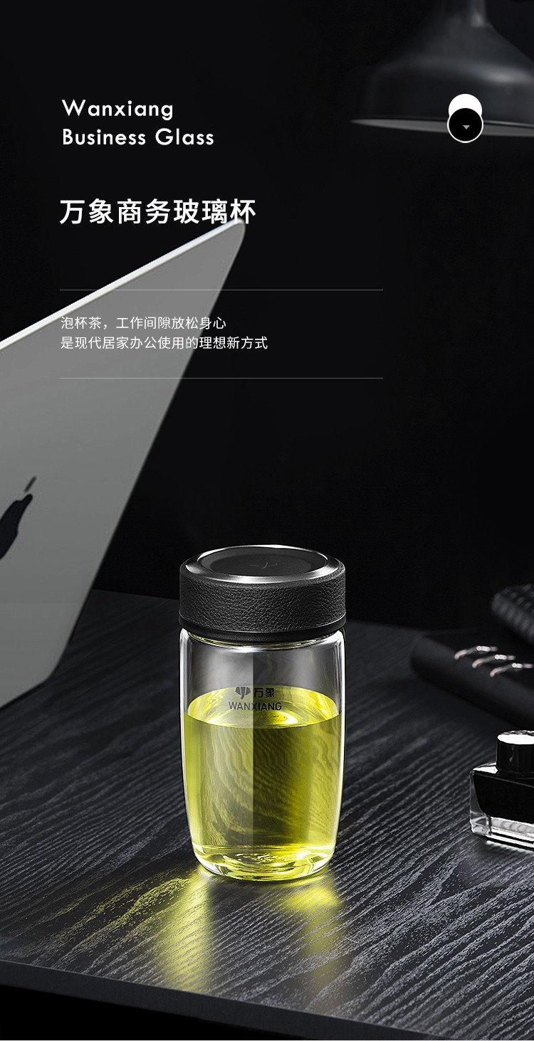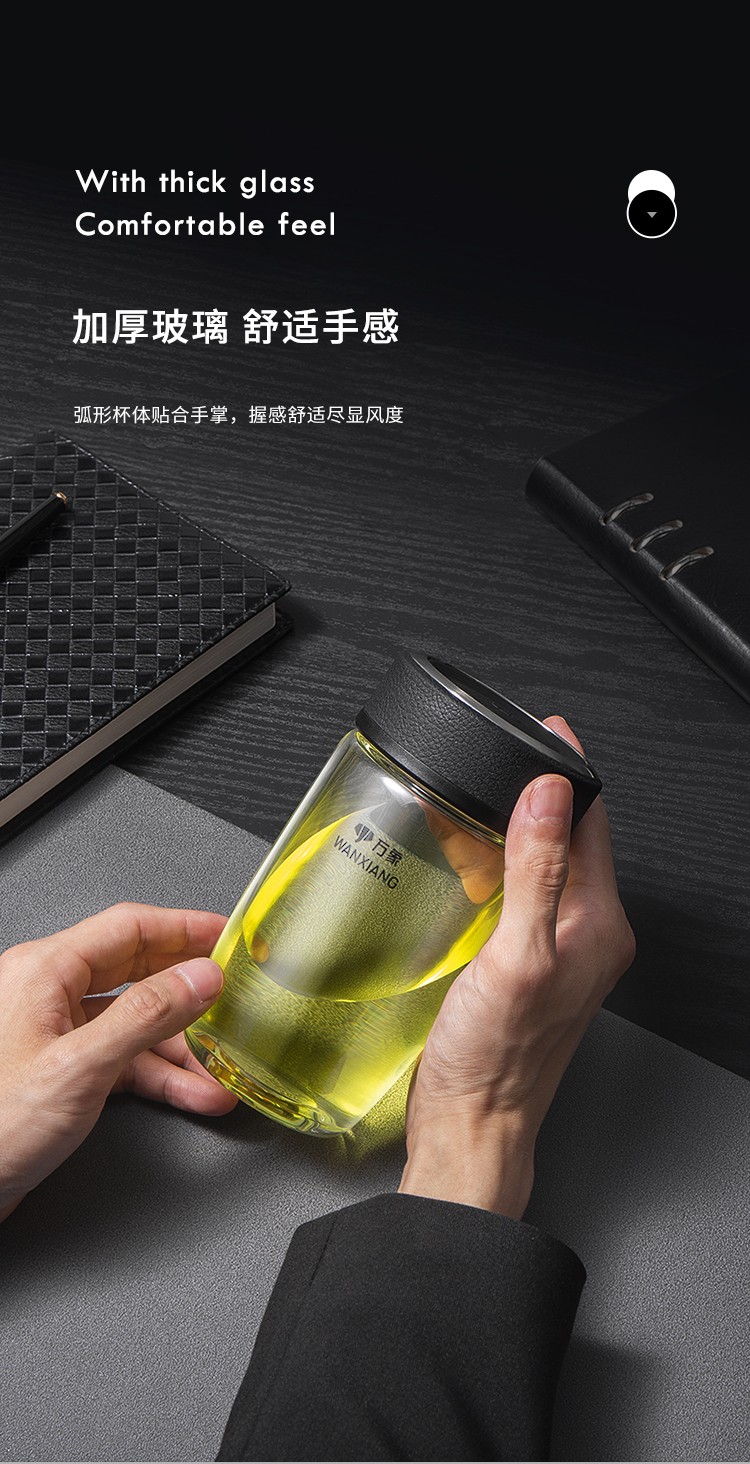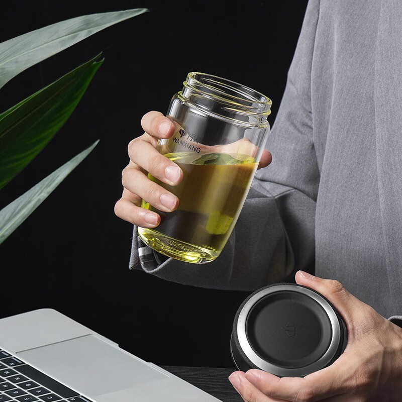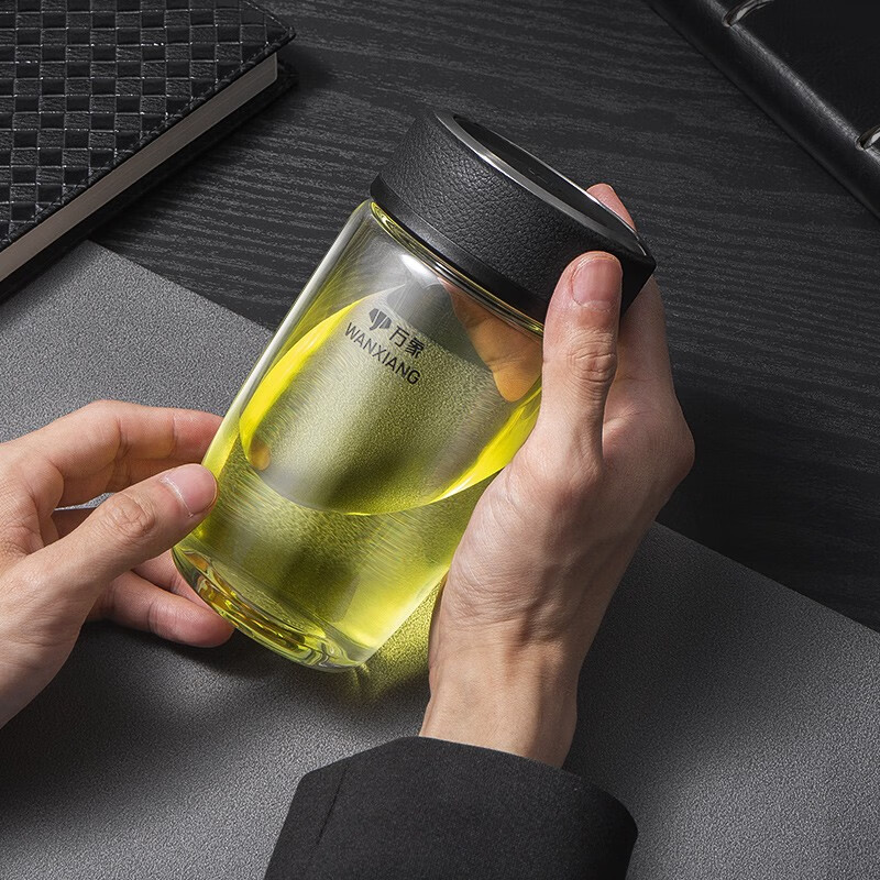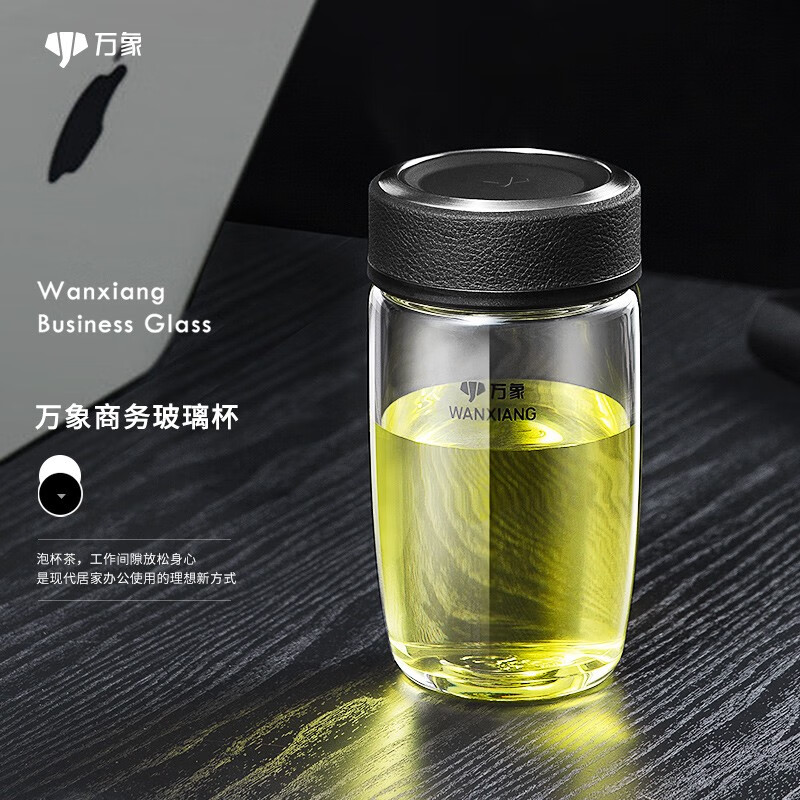 万象(WANXIANG)单层玻璃杯大容量泡茶水杯商务办公家用水杯 U65-360ml(单位:个) 黑色