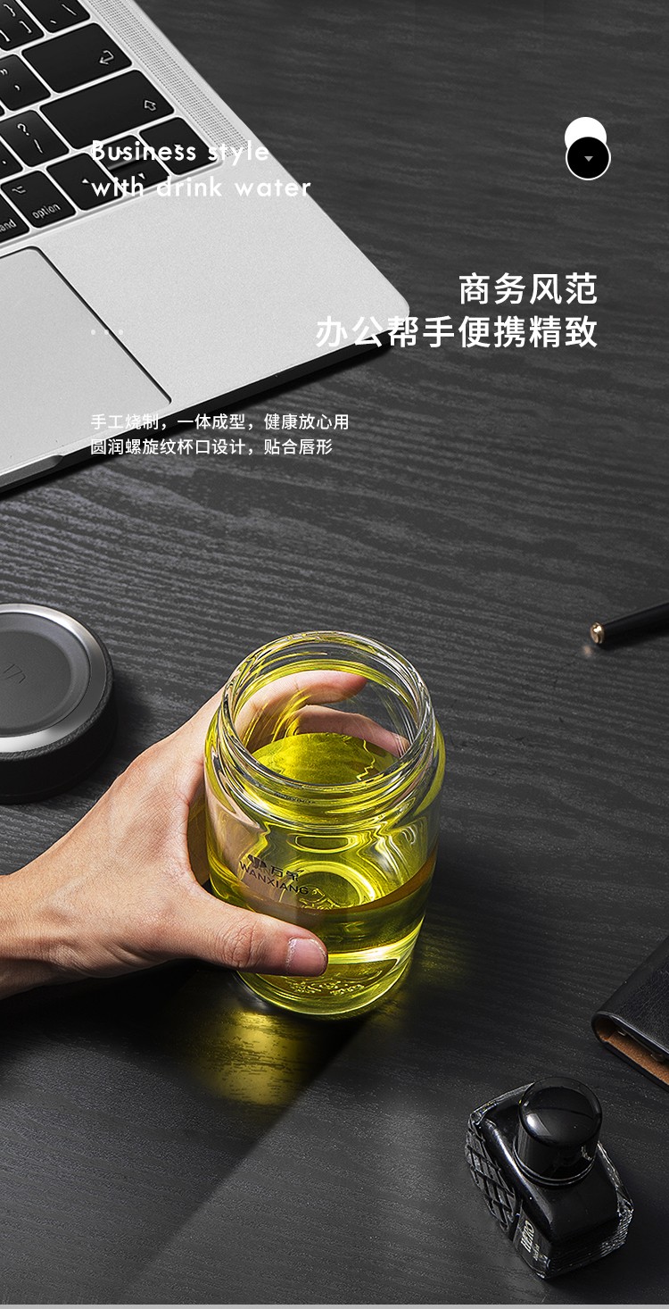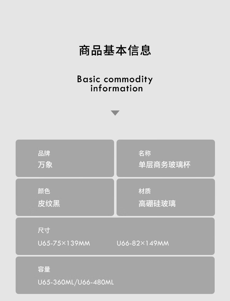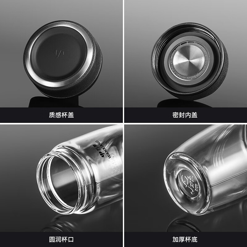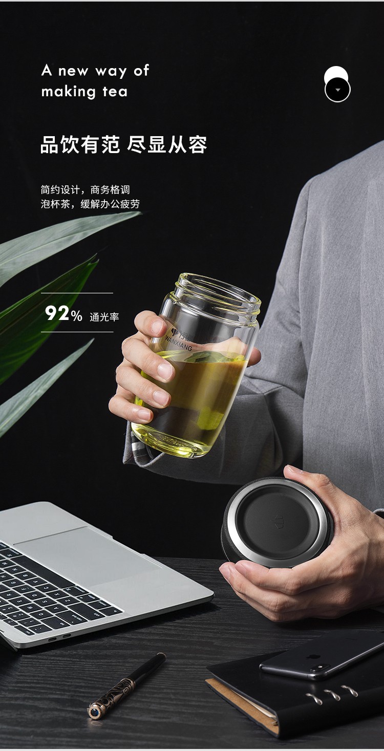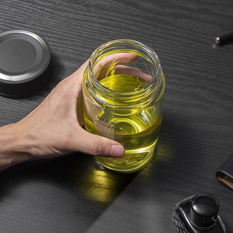 万象(WANXIANG)单层玻璃杯大容量泡茶水杯商务办公家用水杯 U65-360ml(单位:个) 黑色