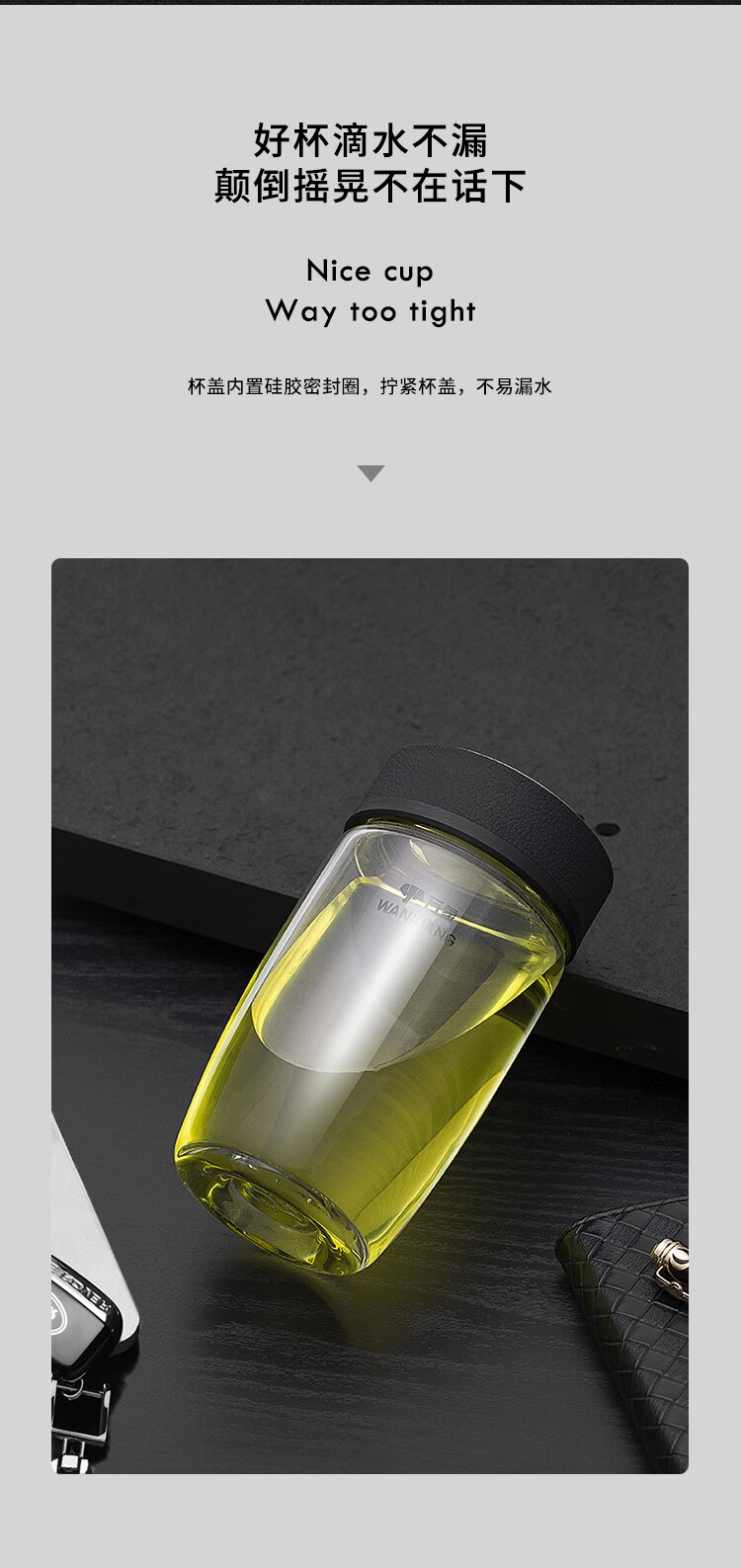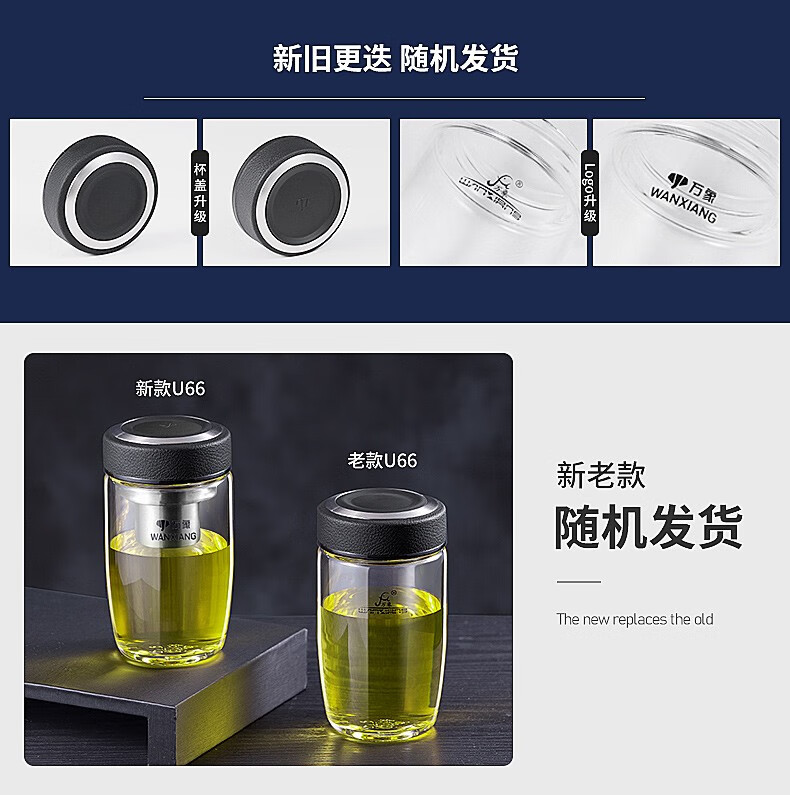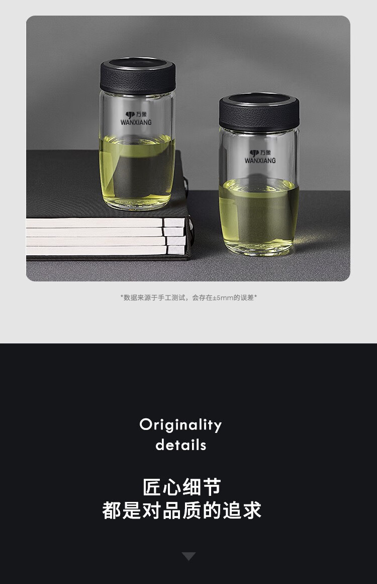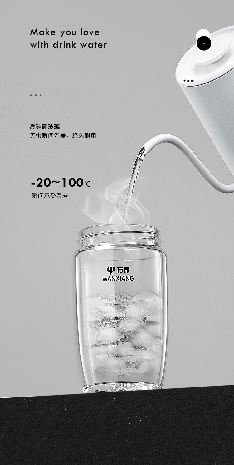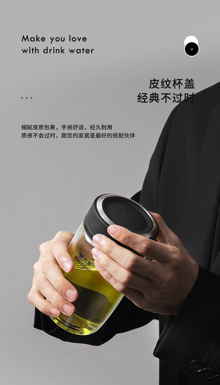 万象(WANXIANG)单层玻璃杯大容量泡茶水杯商务办公家用水杯 U65-360ml(单位:个) 黑色