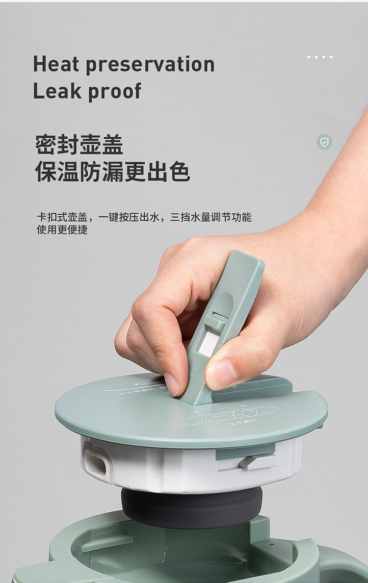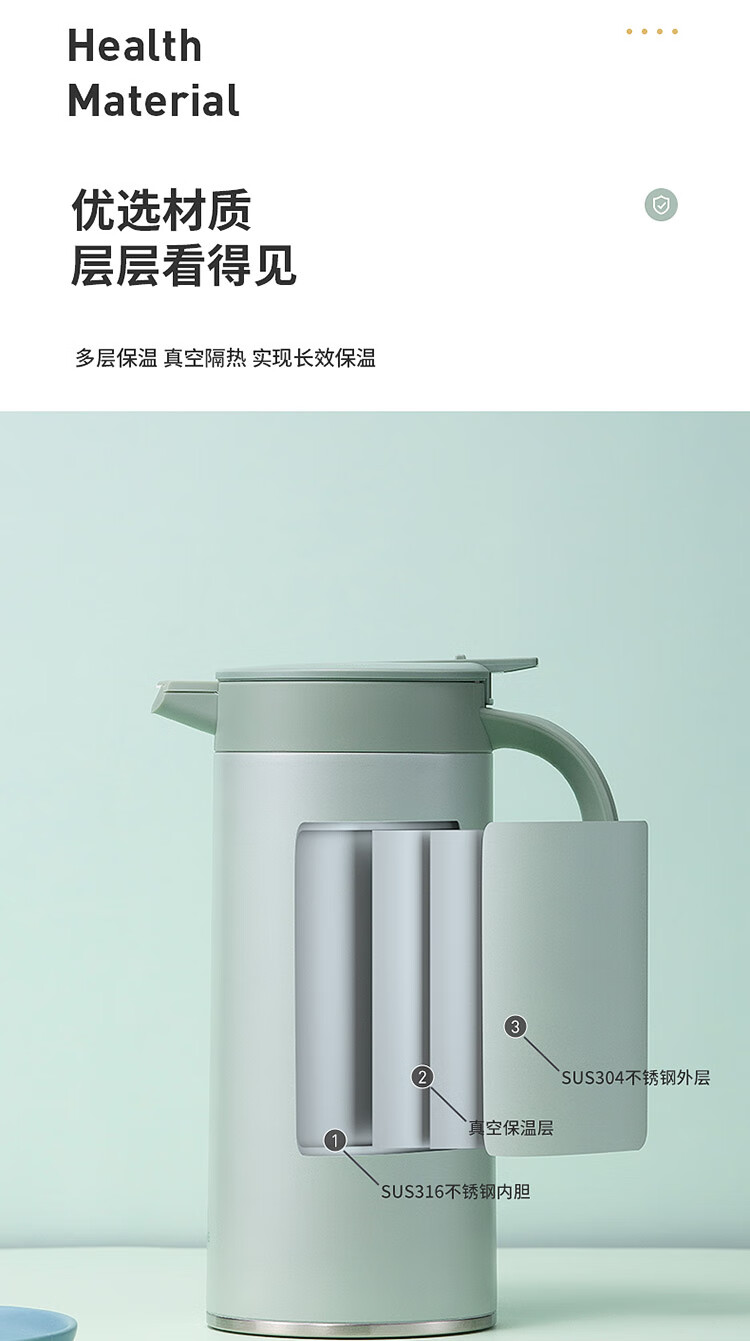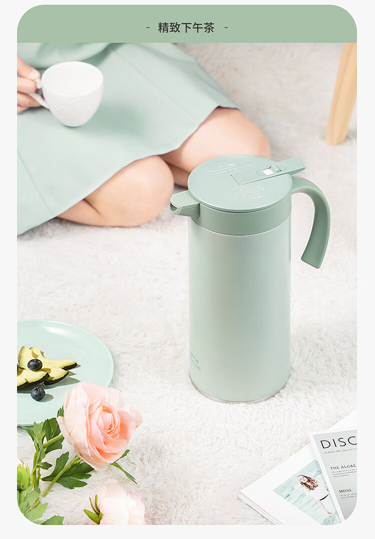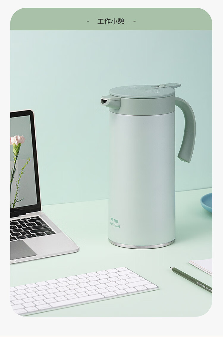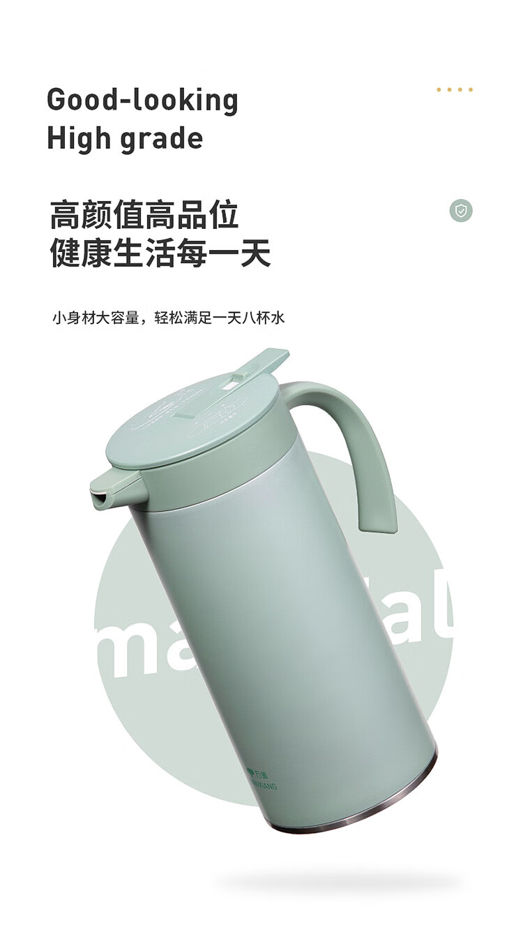 万象(WANXIANG)保温咖啡壶一推开盖真空保温2.0L办公水壶T28S (单位:个) 灰绿色