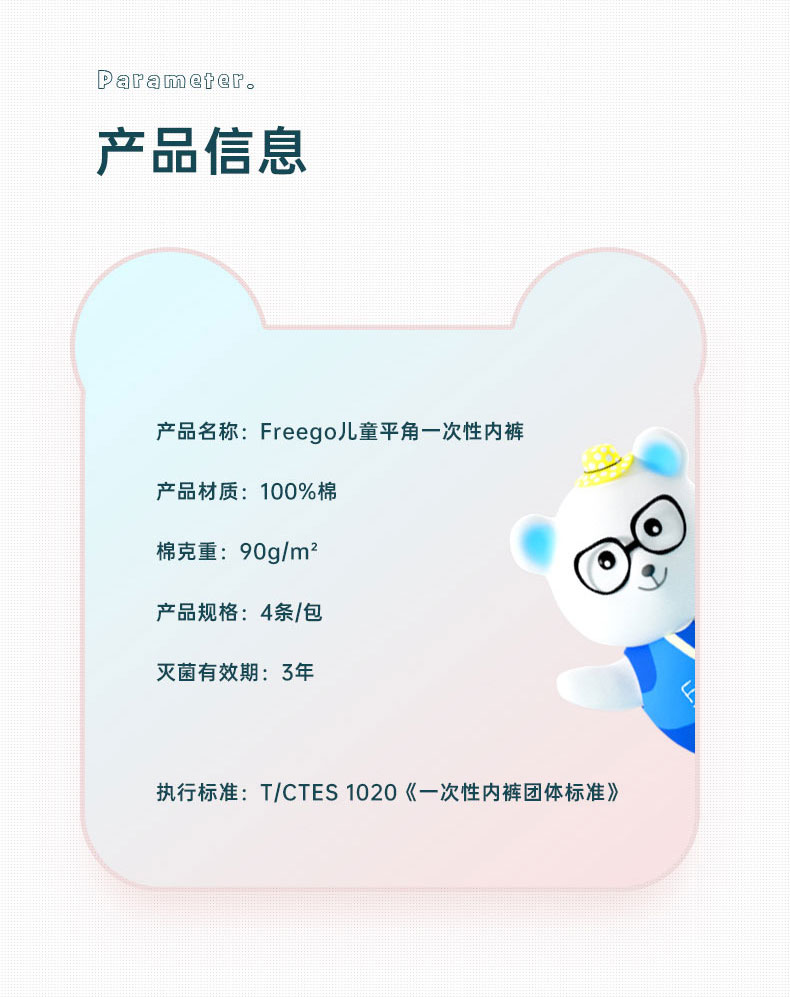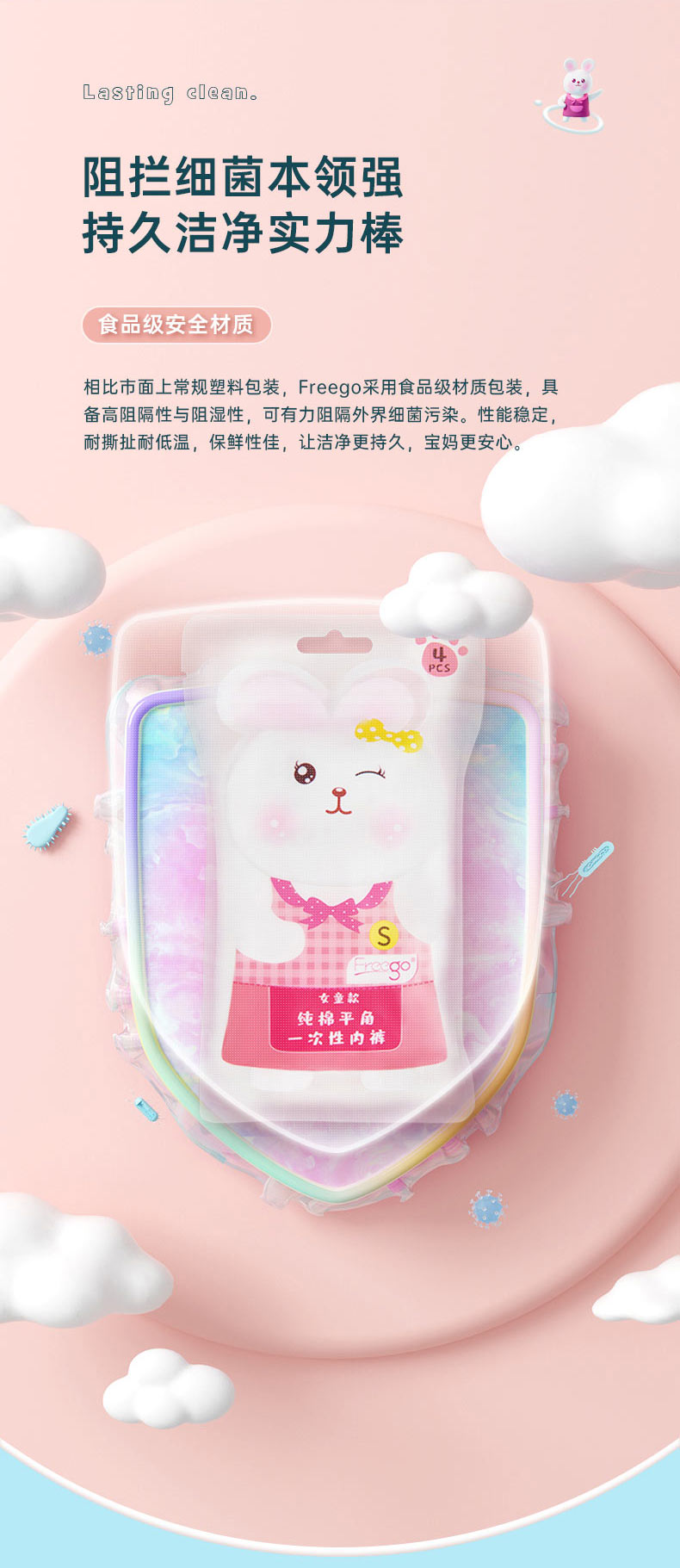 Freego出差旅行第四代儿童一次性纯棉内裤-女童平角款白色 白色 S*10包