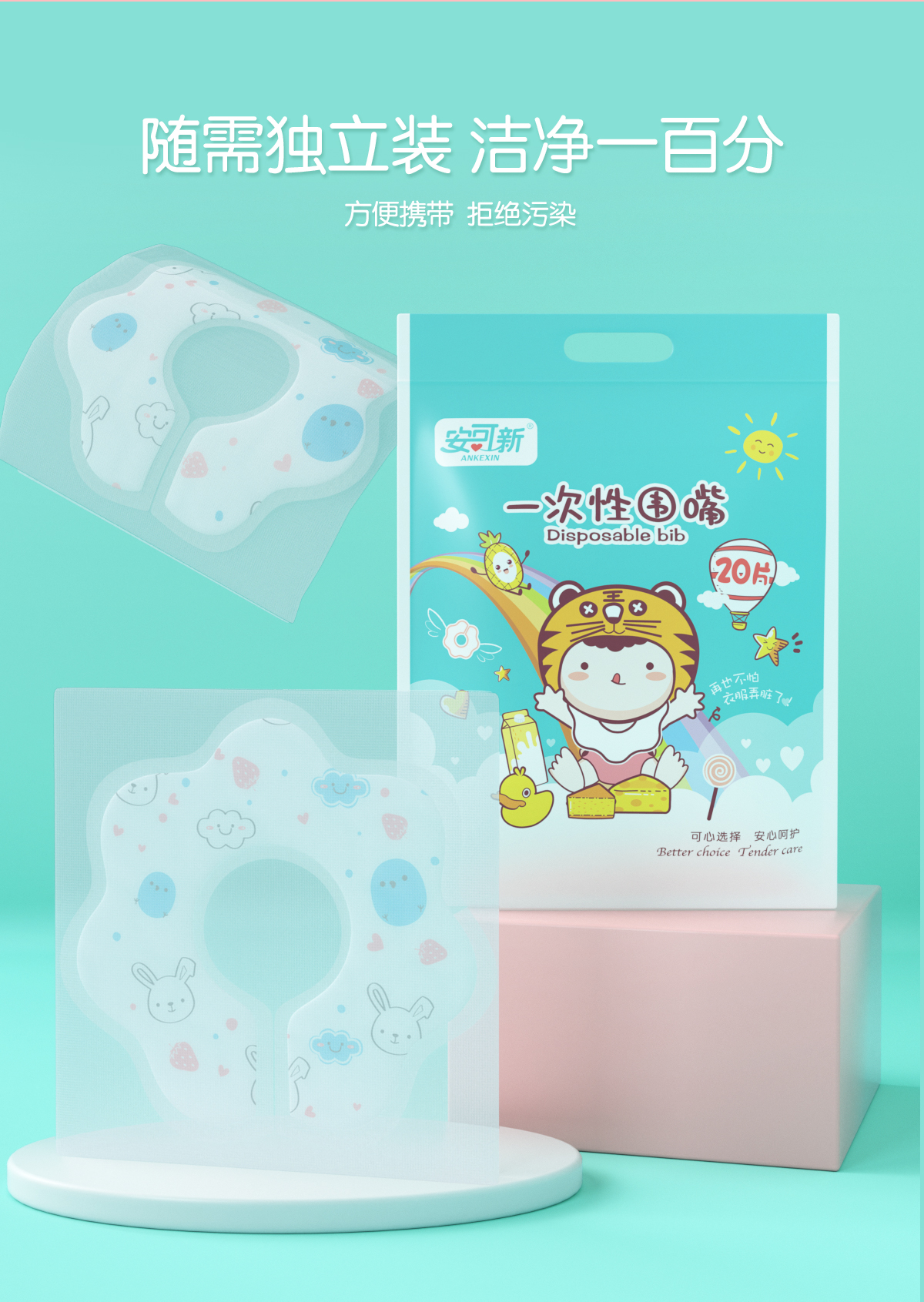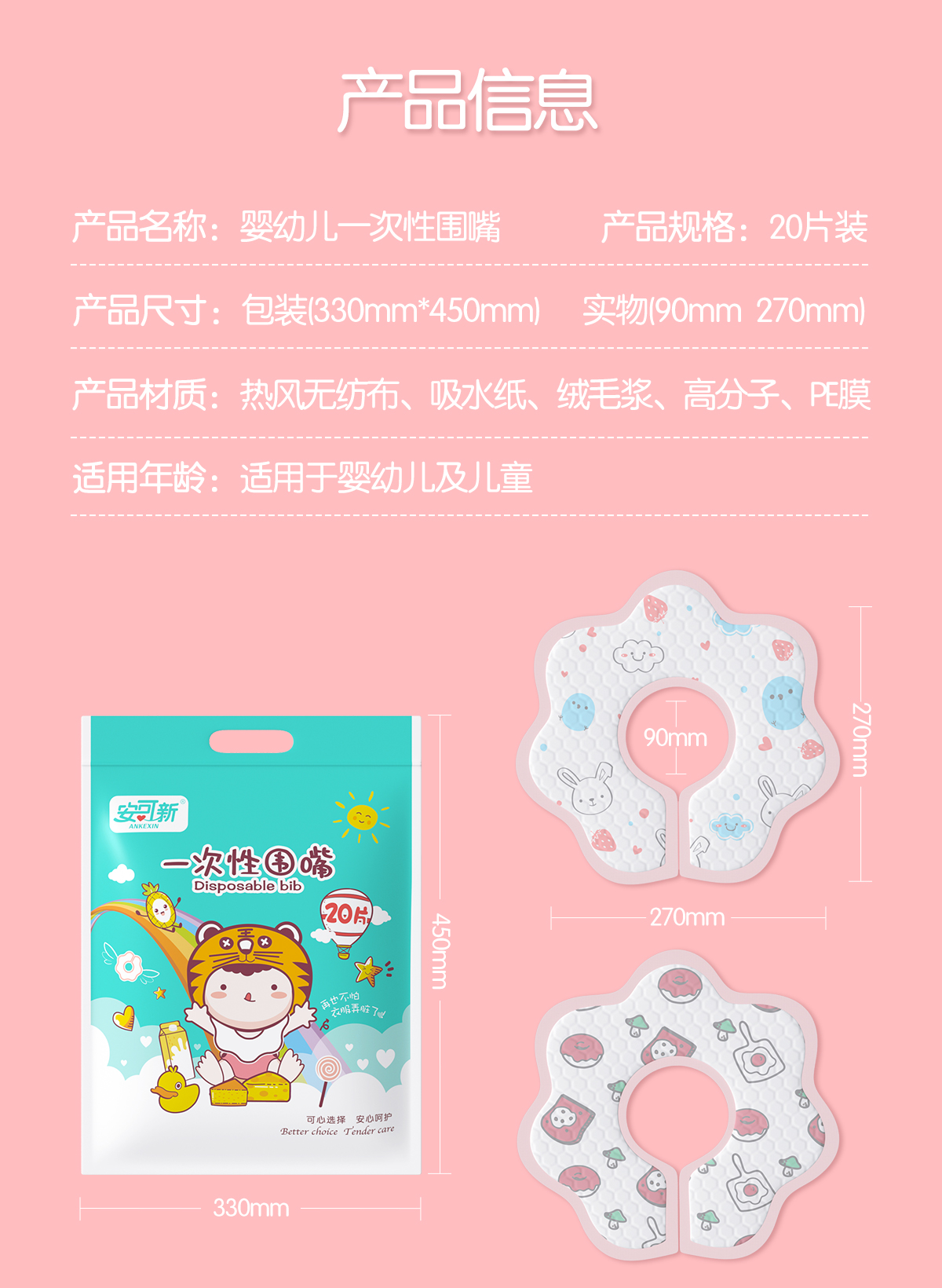 安可新一次性口水巾婴儿围嘴防水新生宝宝防吐奶垫20片*3包(单位包) 花瓣围嘴