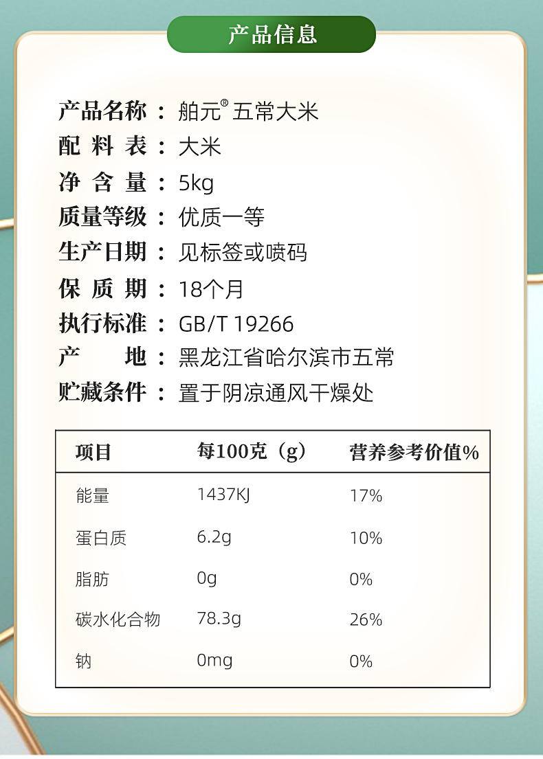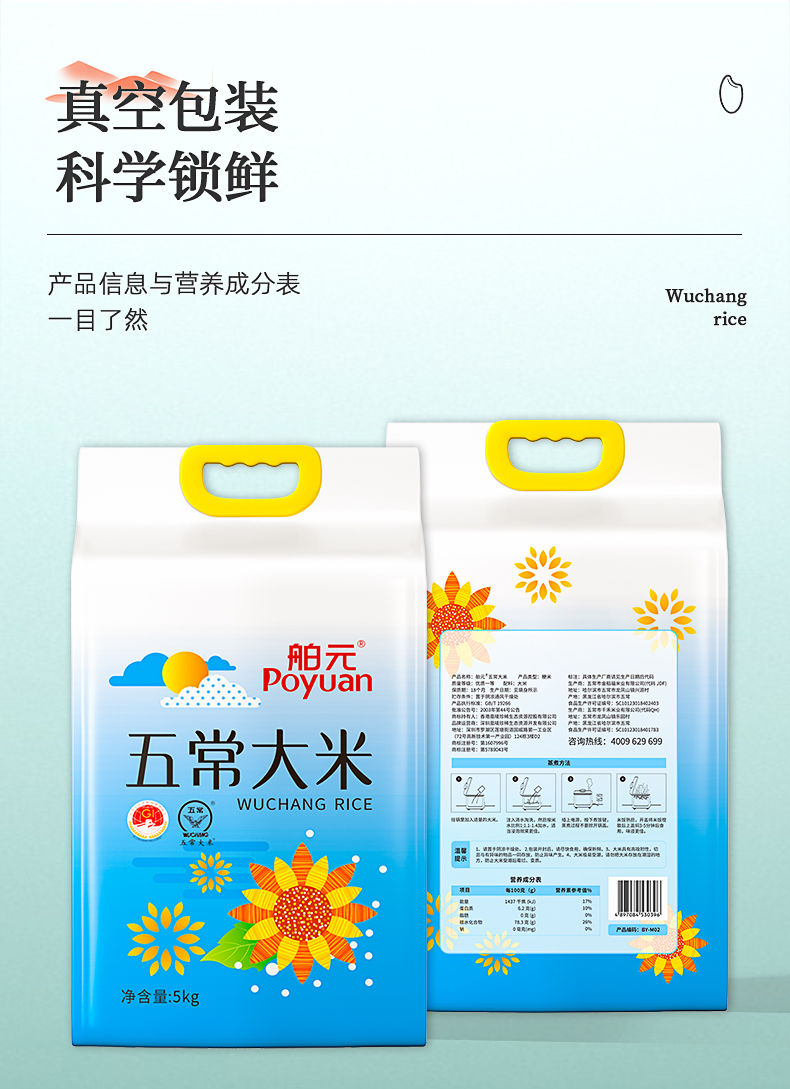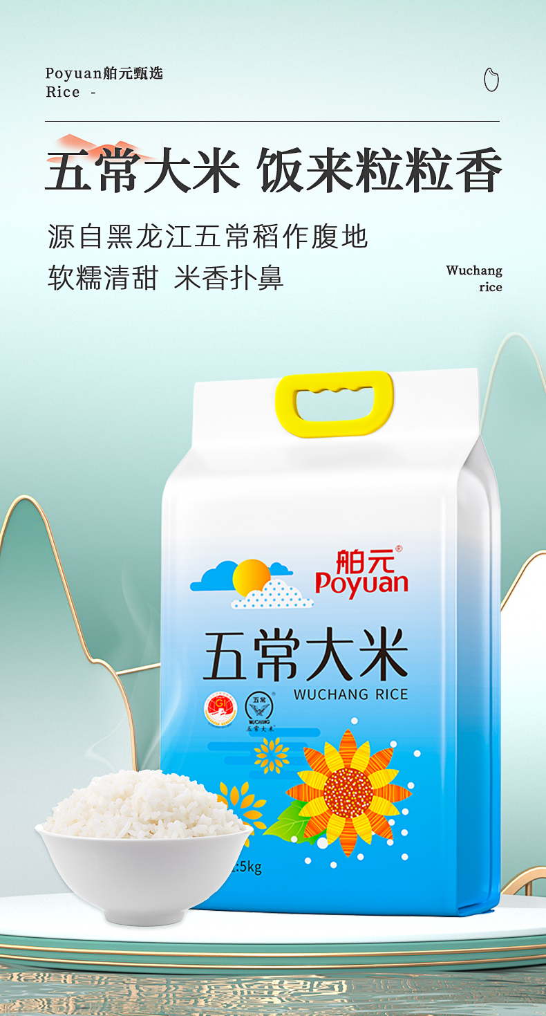 舶元(Poyuan)舶元东北大米五常大米黑龙江粳米10斤家庭装 舶元五常大米5kg 单位:袋 深蓝色