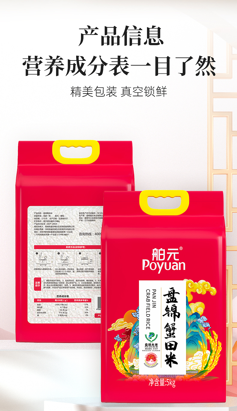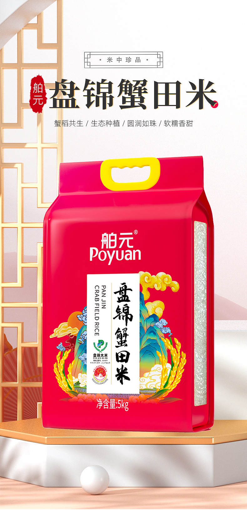 舶元东北大米生态米蟹稻共生珍珠米圆粒米真空家庭装 5kg 蟹稻东北大米5kg 单位:袋 枫叶色