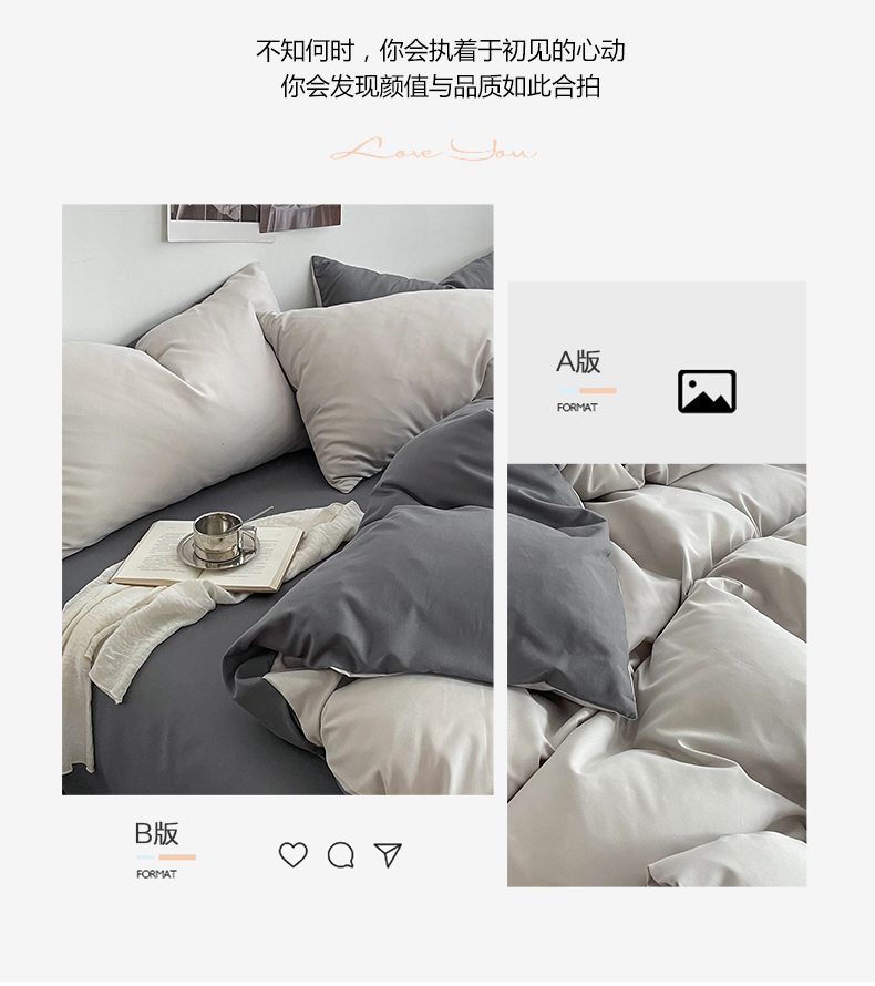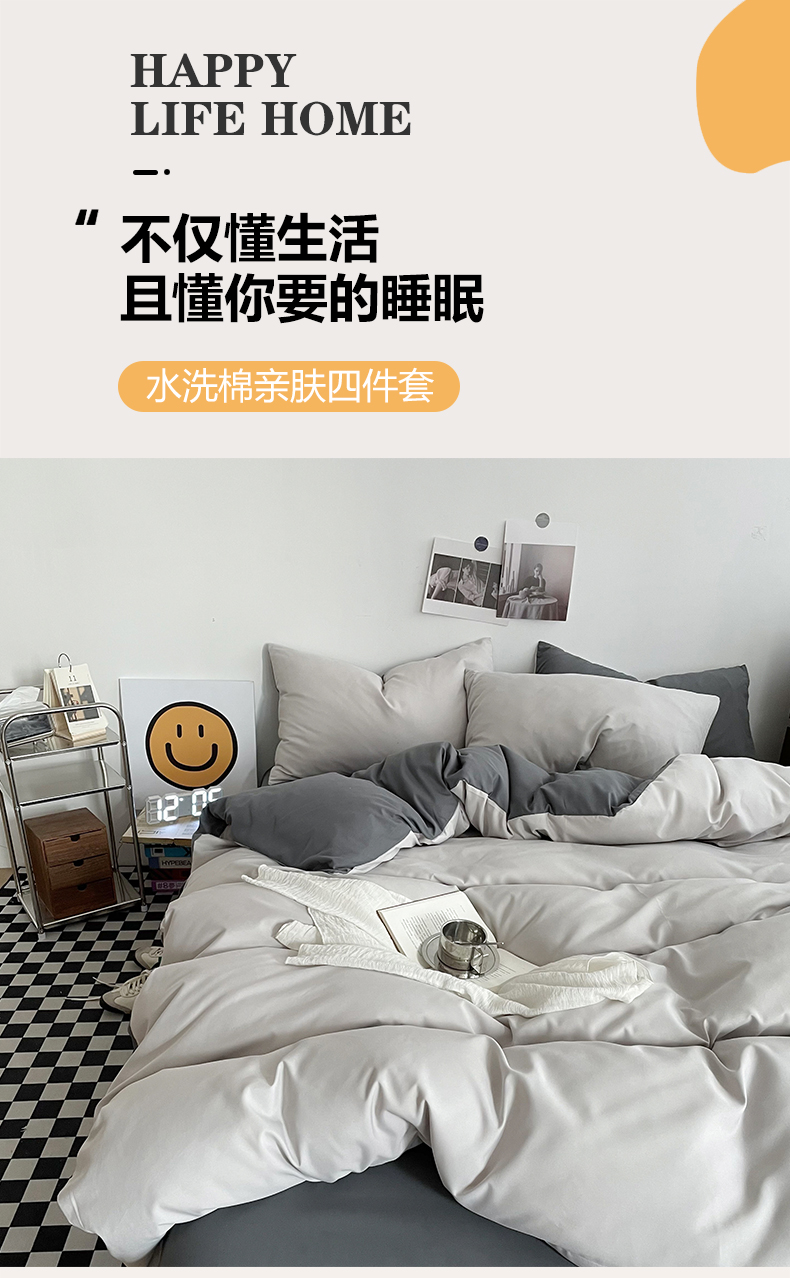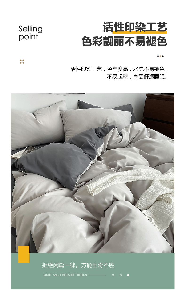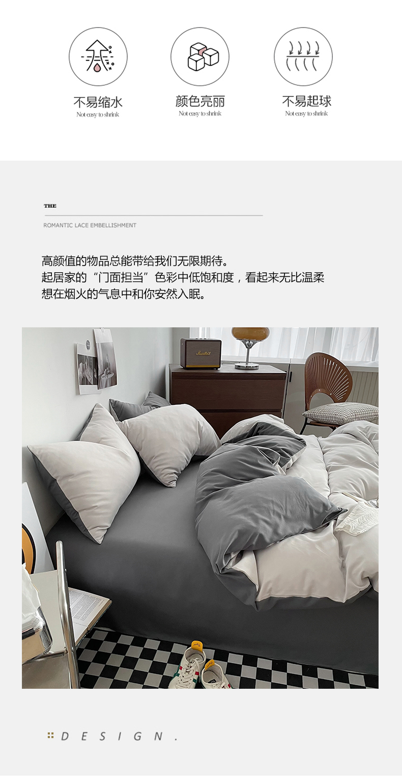 帛享家纺 水洗棉亲肤双拼四件套 单位(套)BXCAL-44301 双拼-豆沙浅灰 被套200*230CM四件套