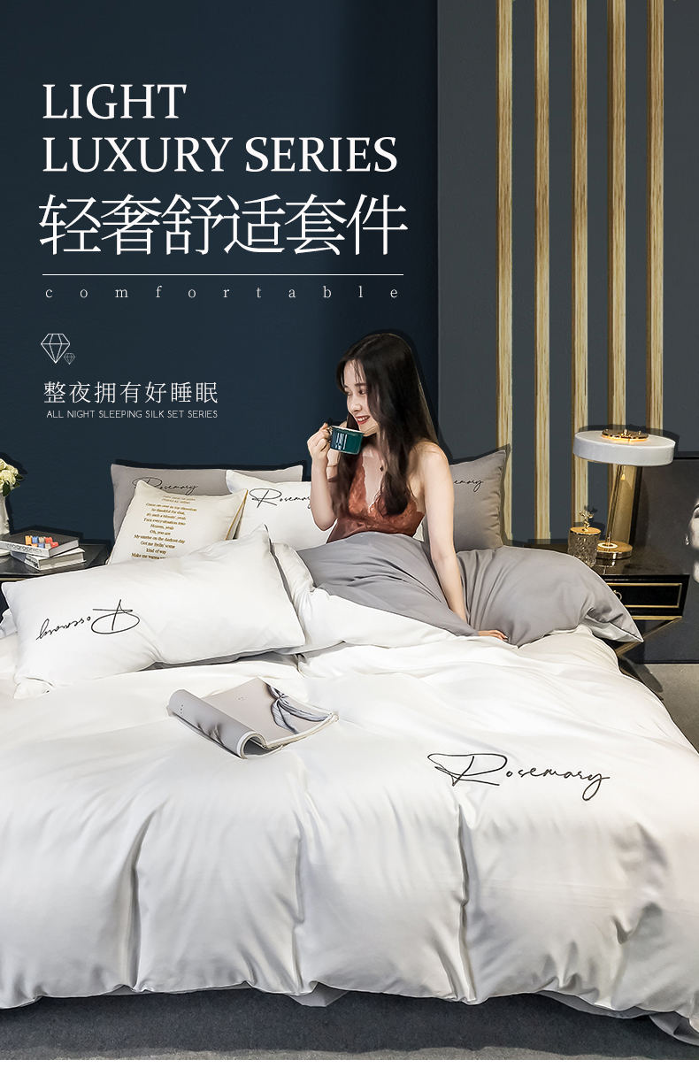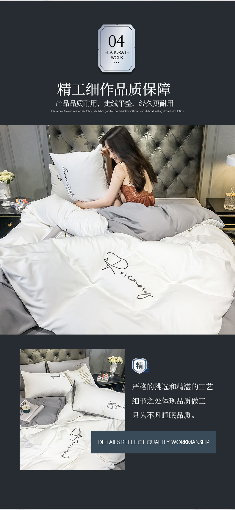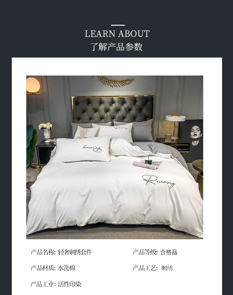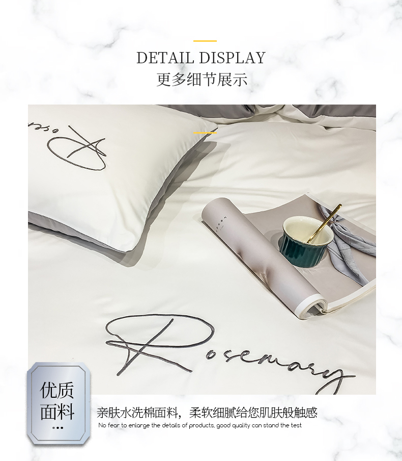 帛享家纺 水洗棉轻奢刺绣四件套-倾城系列 单位(套)BXCHQ-46001 浅石蓝+梵星蓝 被套200*230CM四件套
