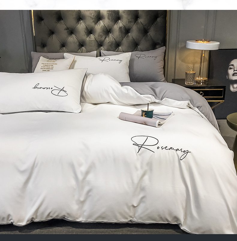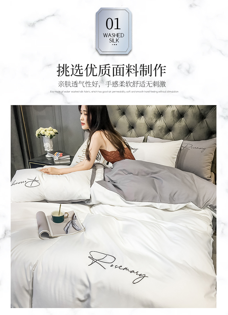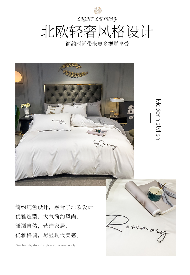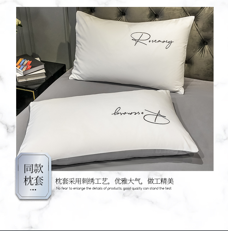 帛享家纺 水洗棉轻奢刺绣四件套-倾城系列 单位(套)BXCHQ-46001 浅石蓝+梵星蓝 被套200*230CM四件套