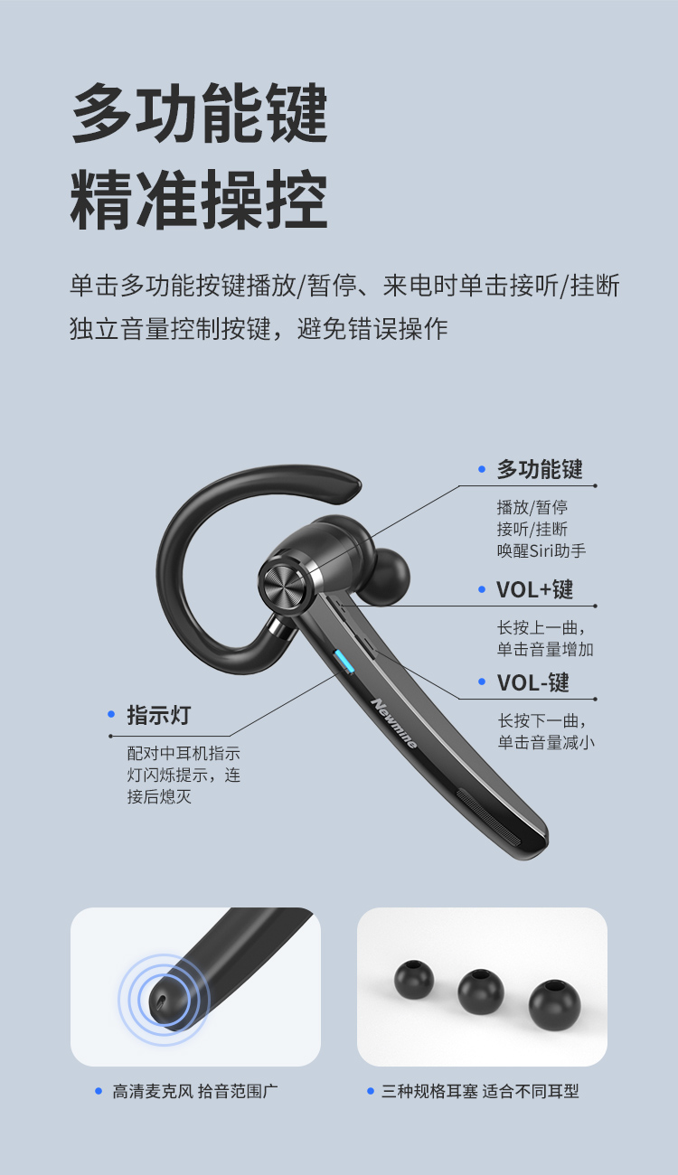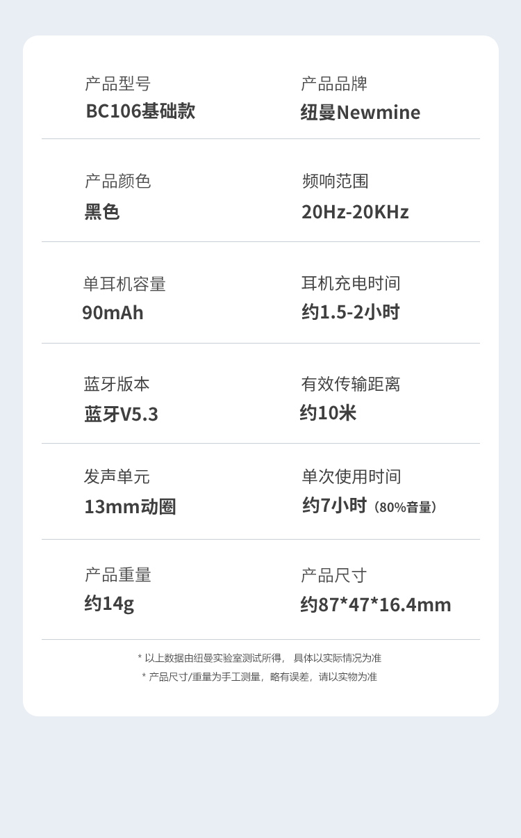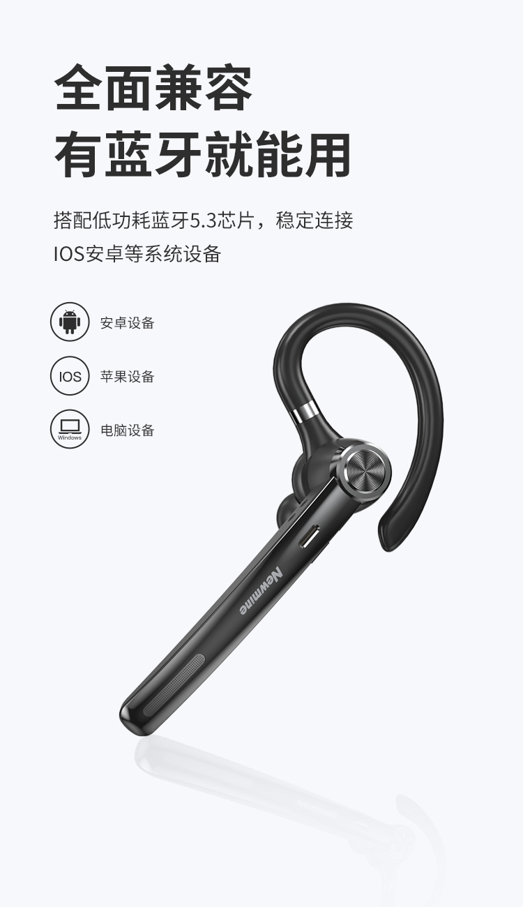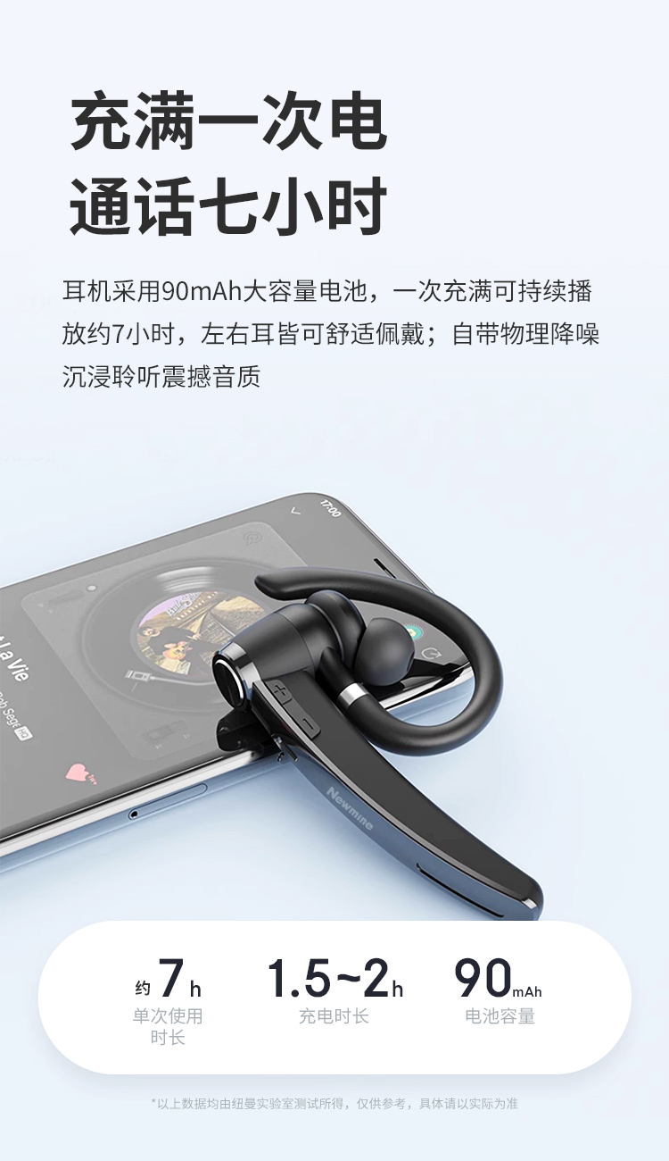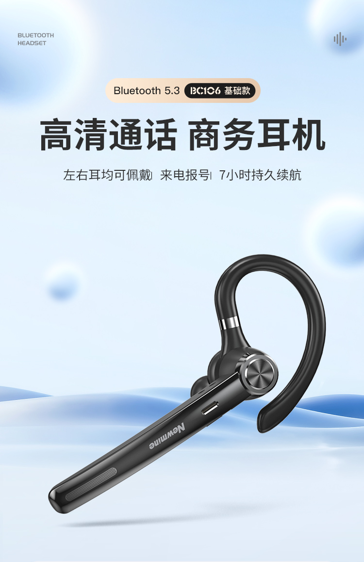 纽曼商务蓝牙耳机超长续航来电报号蓝牙5.3高清降噪通话BC106基础 单位:个 黑色
