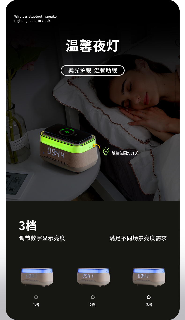 超维 CW602 多功能音箱 四合一多功能无线充蓝牙音箱+闹钟+小夜灯(单位:台) 图片色