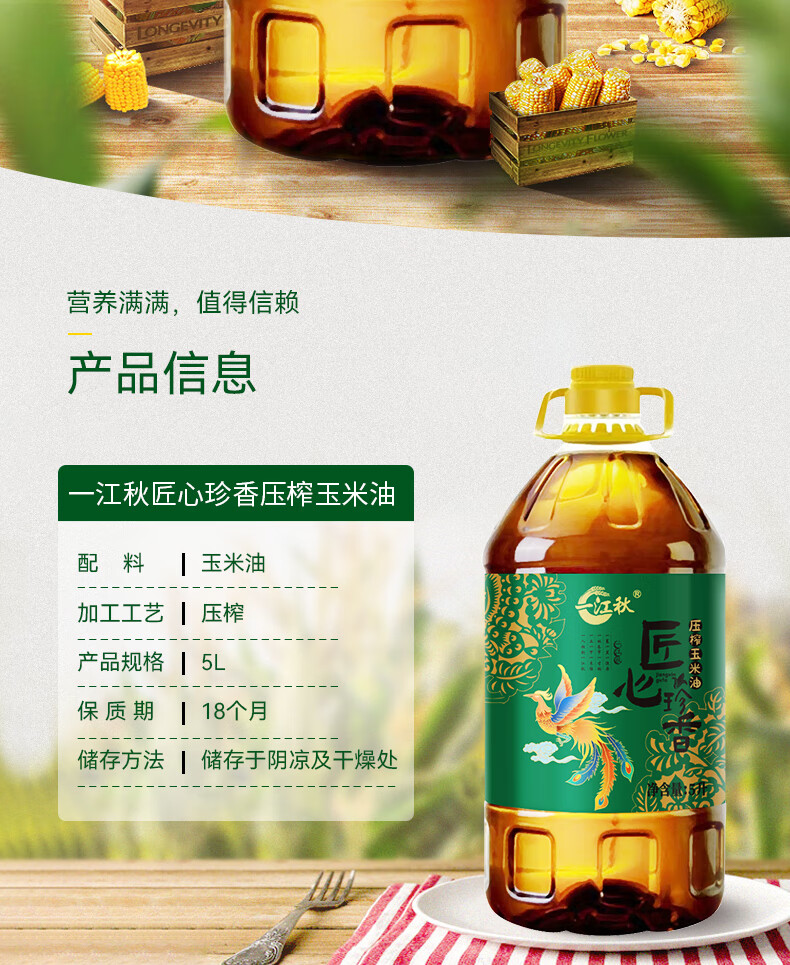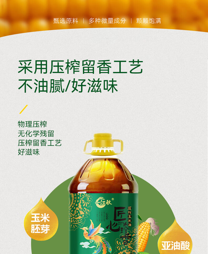 一江秋 匠心珍香压榨玉米油5L(单位:瓶) 自然色