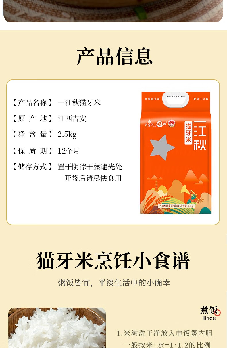 一江秋 猫牙米2.5kg长粒大米籼米(单位:袋) 象牙色