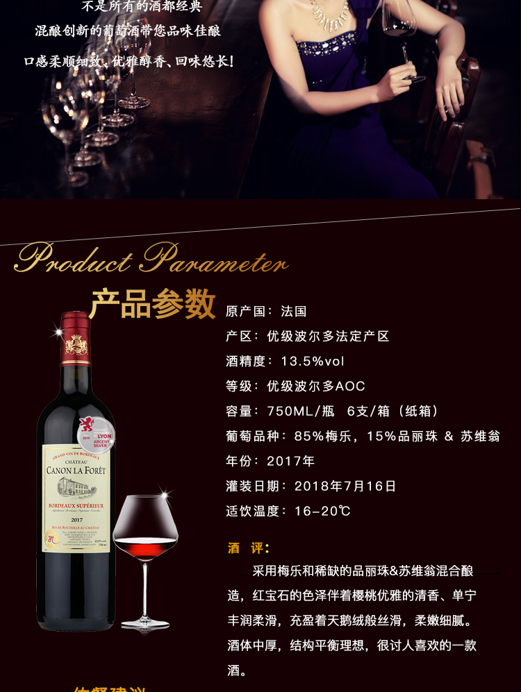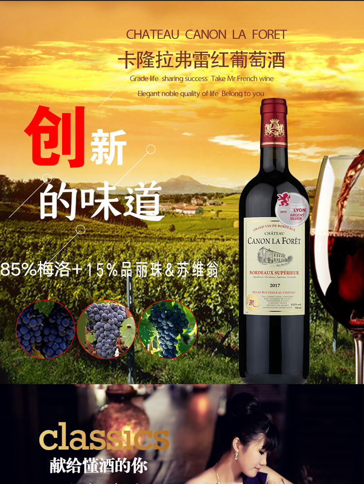 法国原瓶进口卡隆拉弗雷庄园2017红葡萄酒750ml国际大赛银奖 750ml/瓶