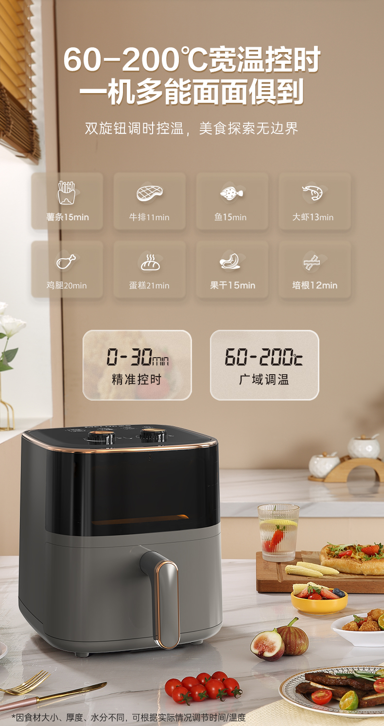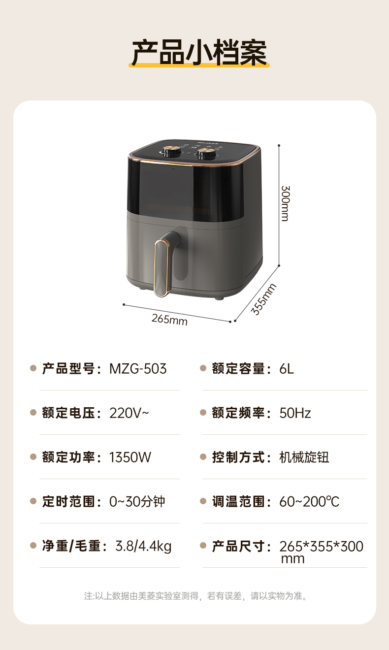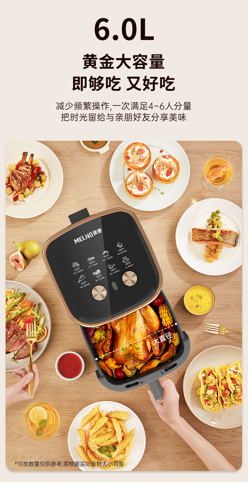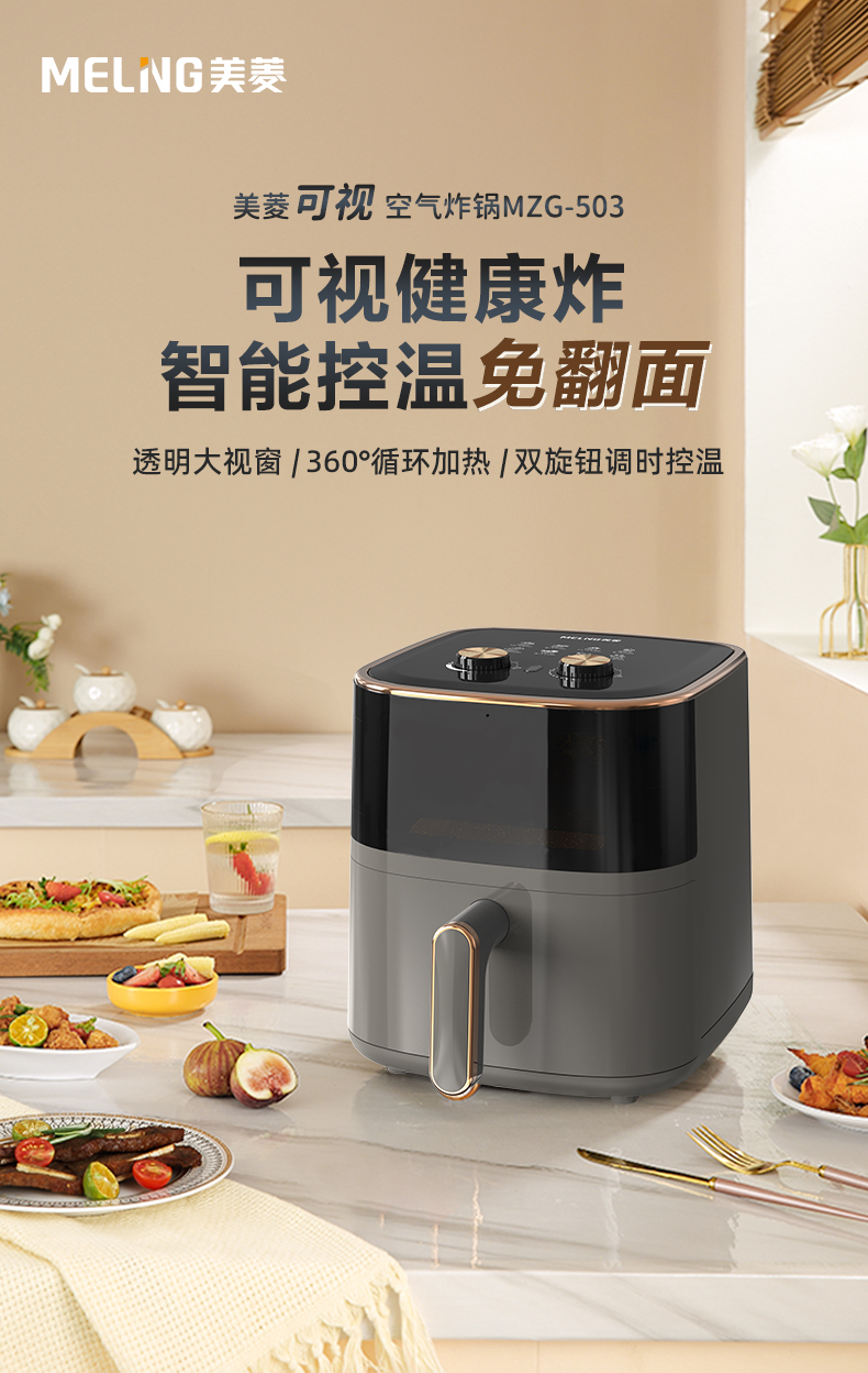 美菱(MELNG)家用6L可视空气炸锅 MZG-503(单位/台) 灰色