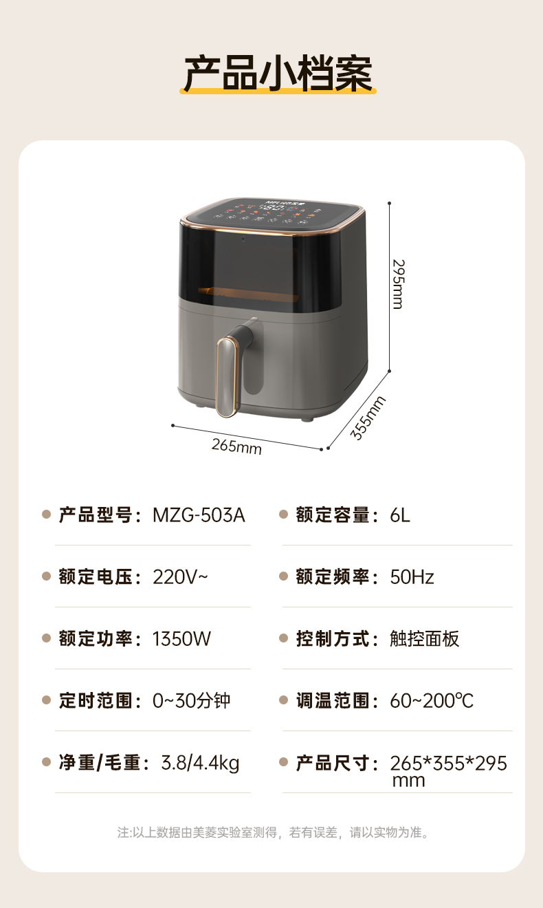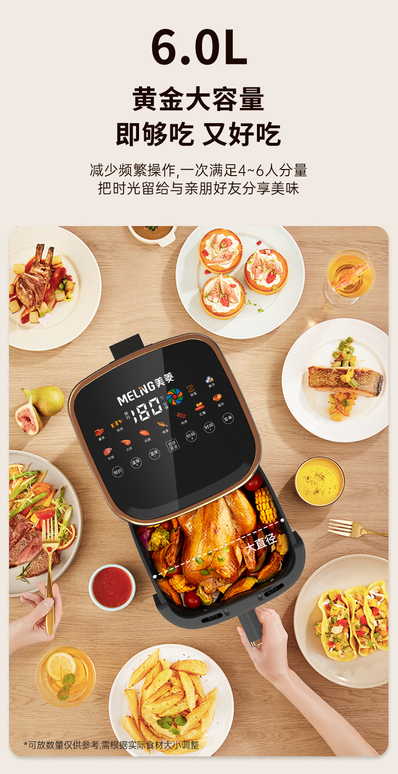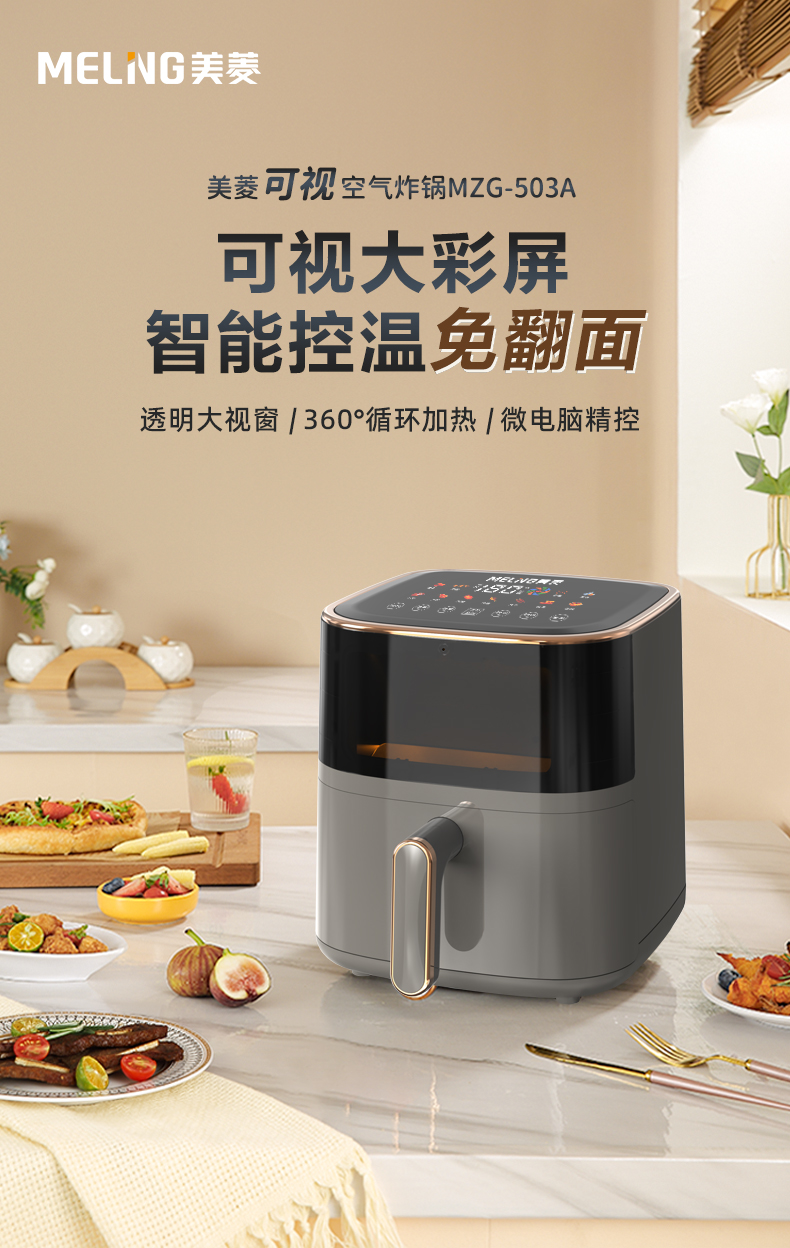 美菱(MELNG)家用6L可视空气炸锅电子款 MZG-503A(单位/台) 灰色