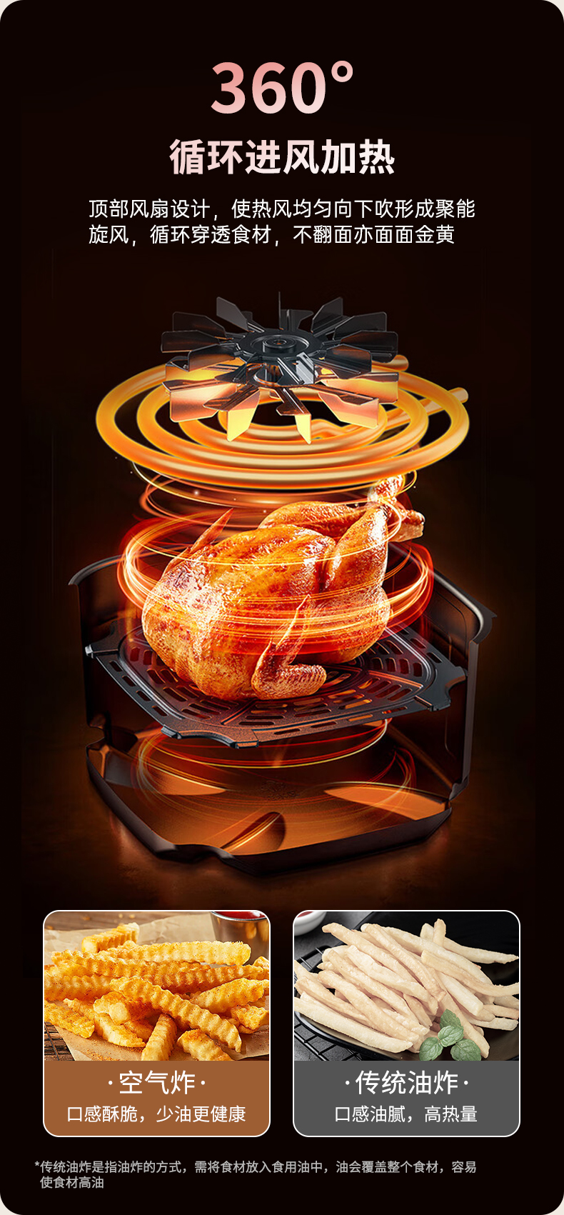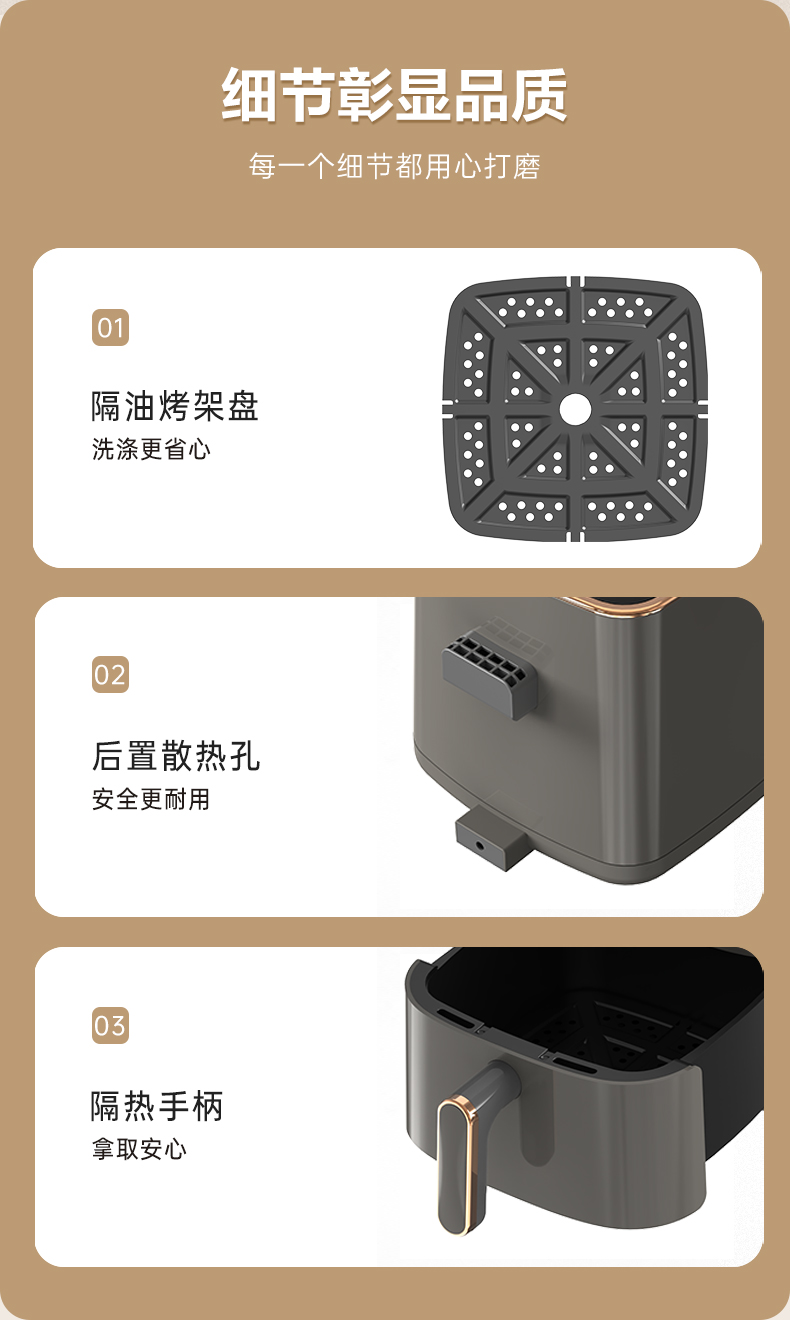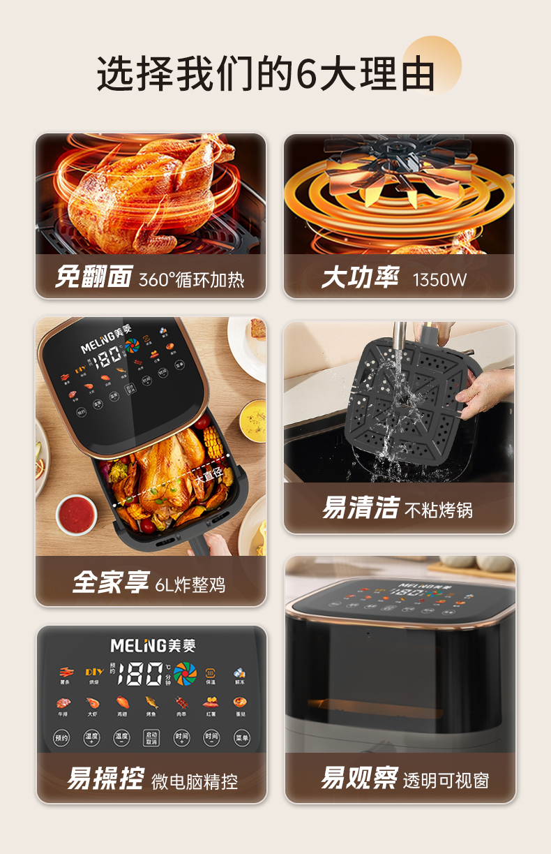 美菱(MELNG)家用6L可视空气炸锅电子款 MZG-503A(单位/台) 灰色