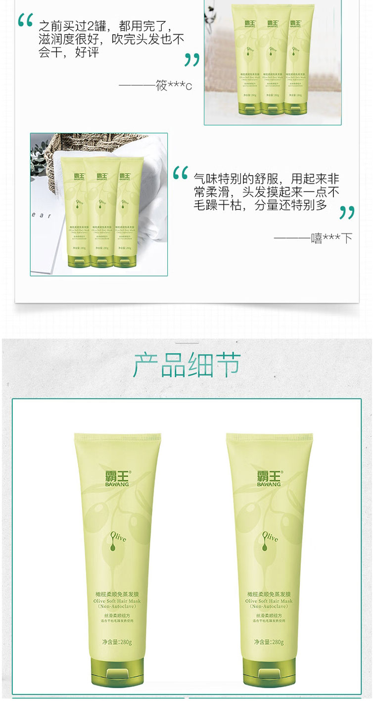 霸王橄榄柔顺免蒸发膜280g (单位:瓶) 香槟黄