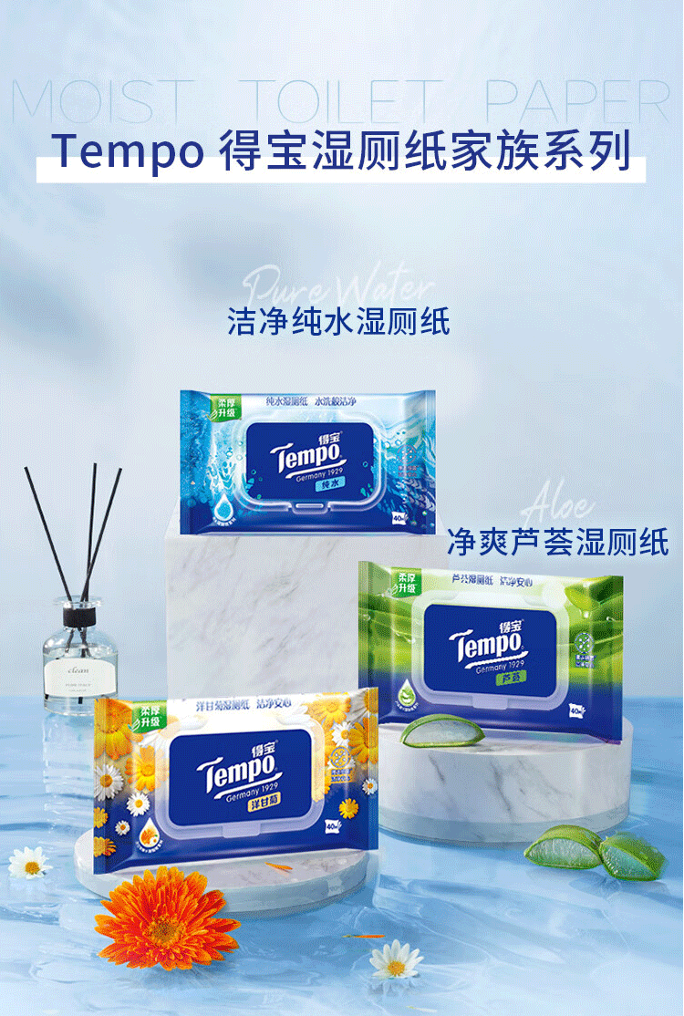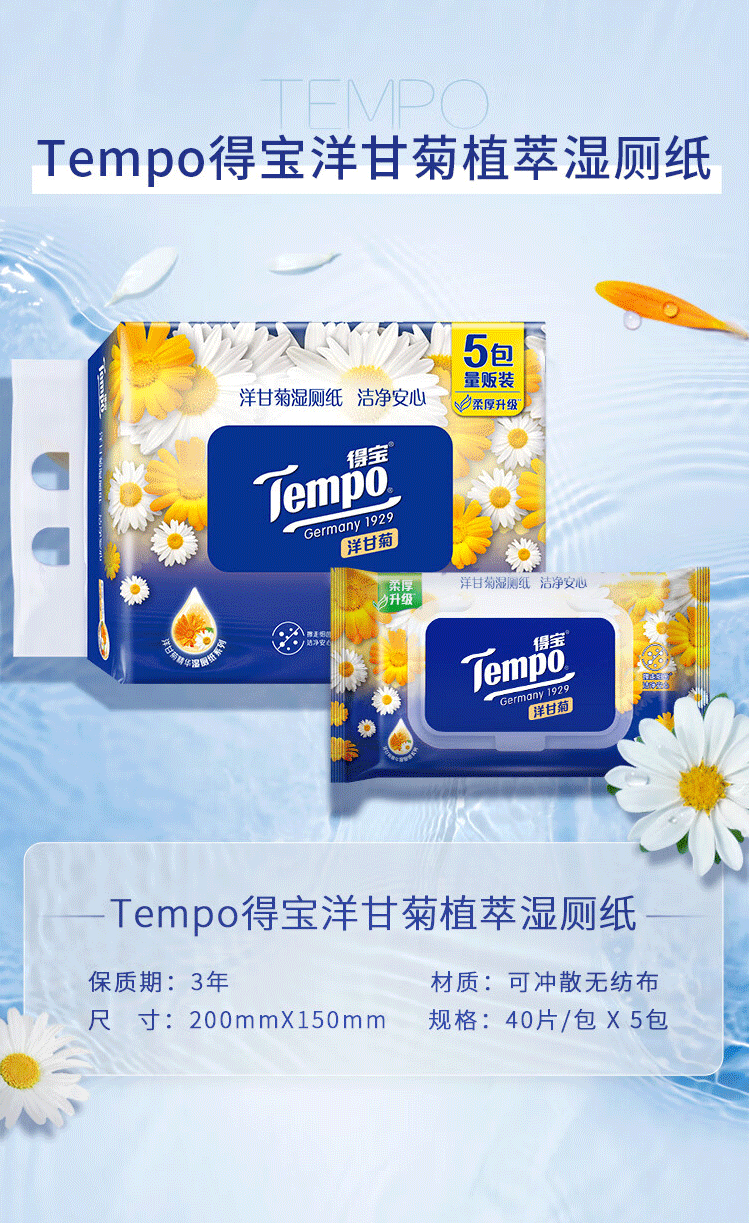得宝洋甘菊湿厕纸40片5包(单位:组) 本白色