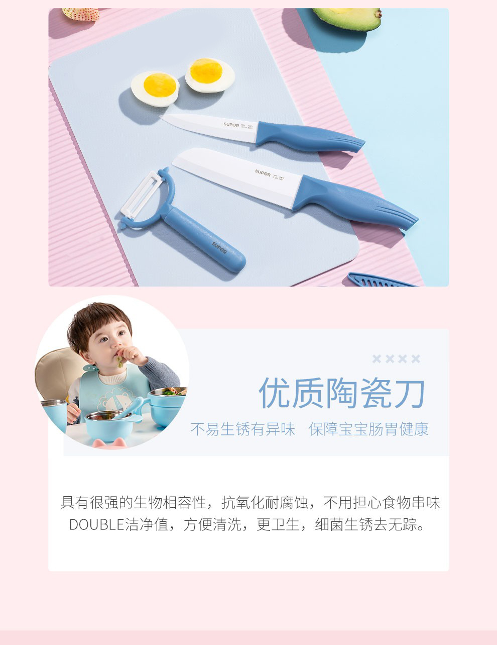 苏泊尔婴童陶瓷刀具3件套.格里蓝/TK1952E(单位:套) 格里蓝