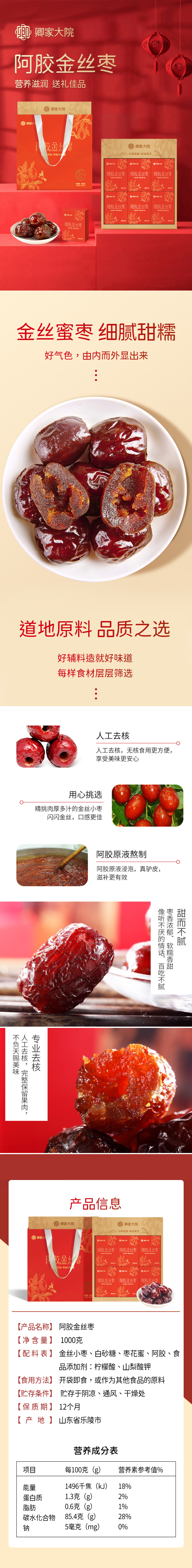 【卿家大院】金丝阿胶枣1000g(单位:盒) 红色