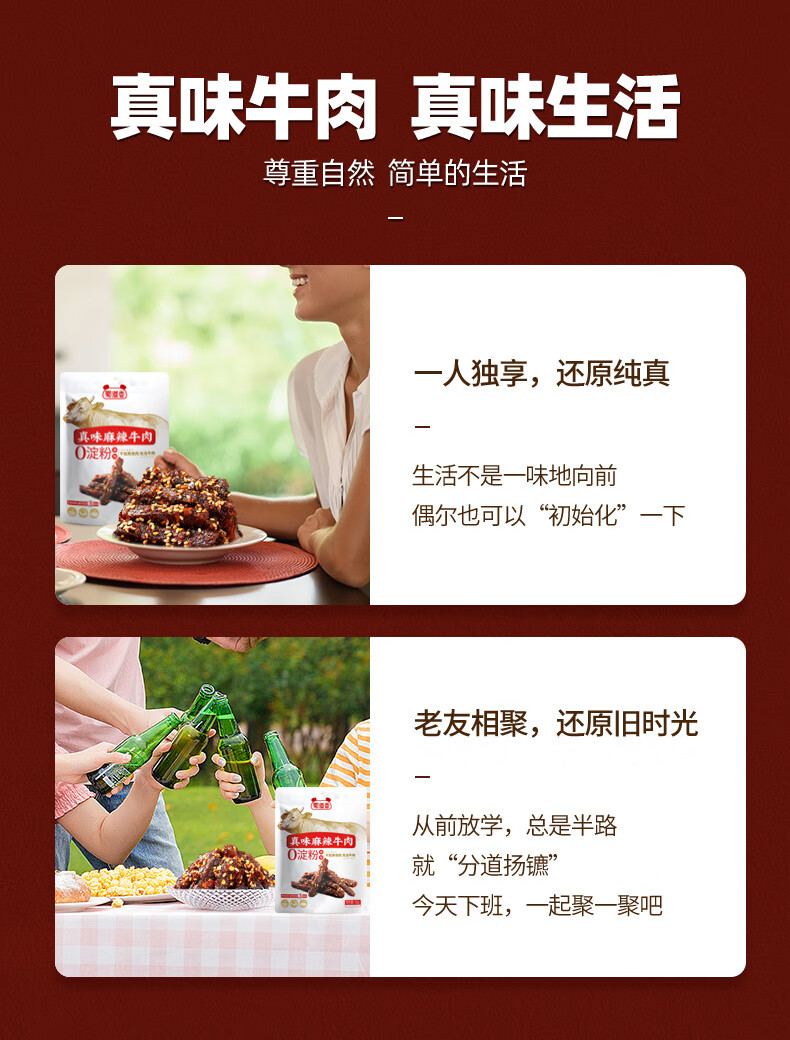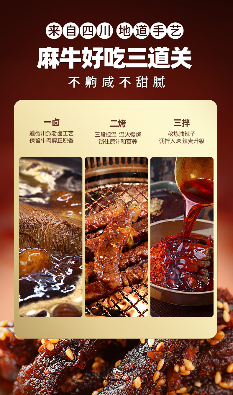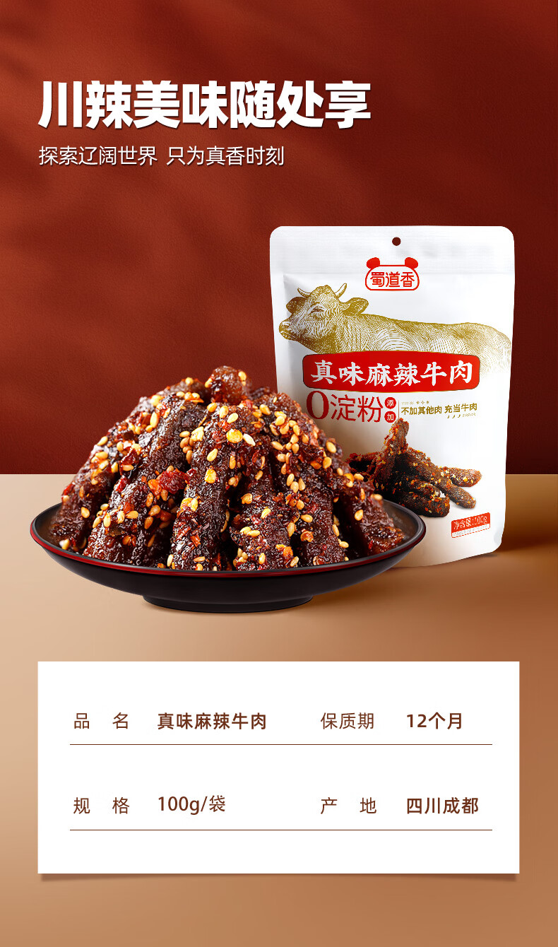 蜀道香 麻辣牛肉干 冷吃系列解馋小零食辣味四川成都香辣小吃特产 真味卤辣牛肉 100g*4袋 莓果色