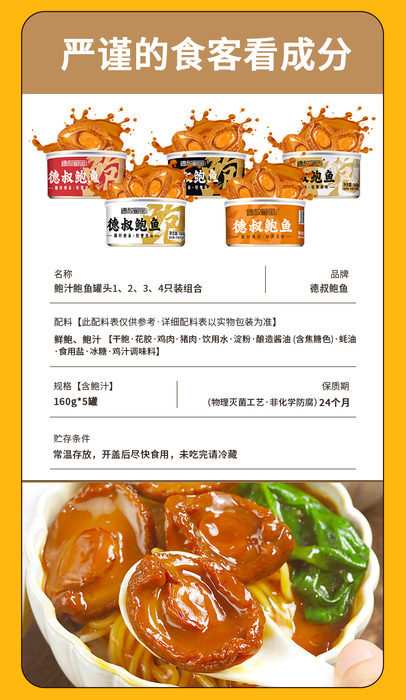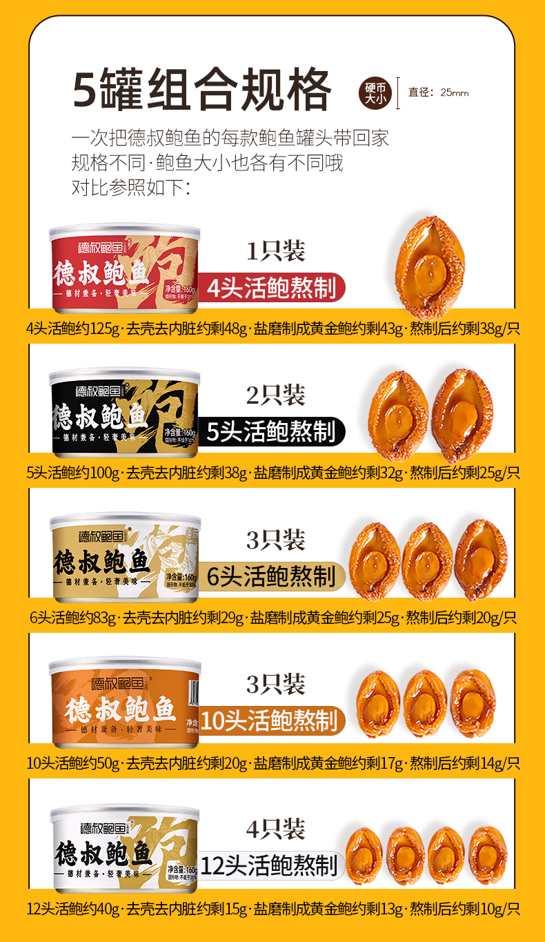 德叔鲍鱼 大满贯鲍鱼罐头160g*5罐 枫叶色
