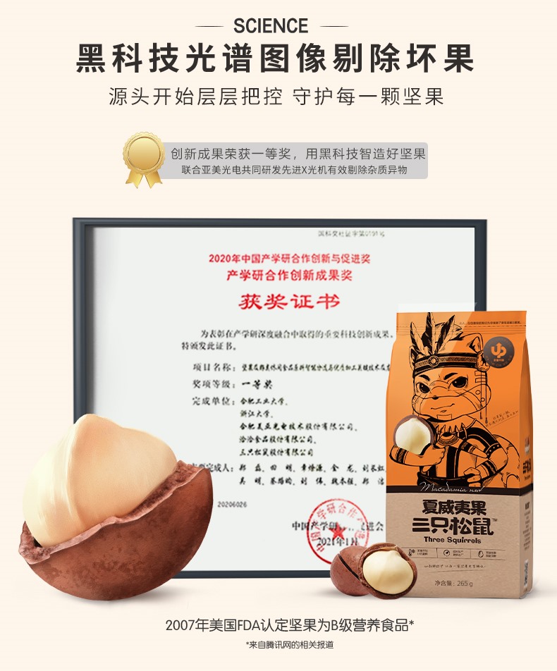 【三只松鼠】大头装_夏威夷果 265g(单位:袋) 橙色