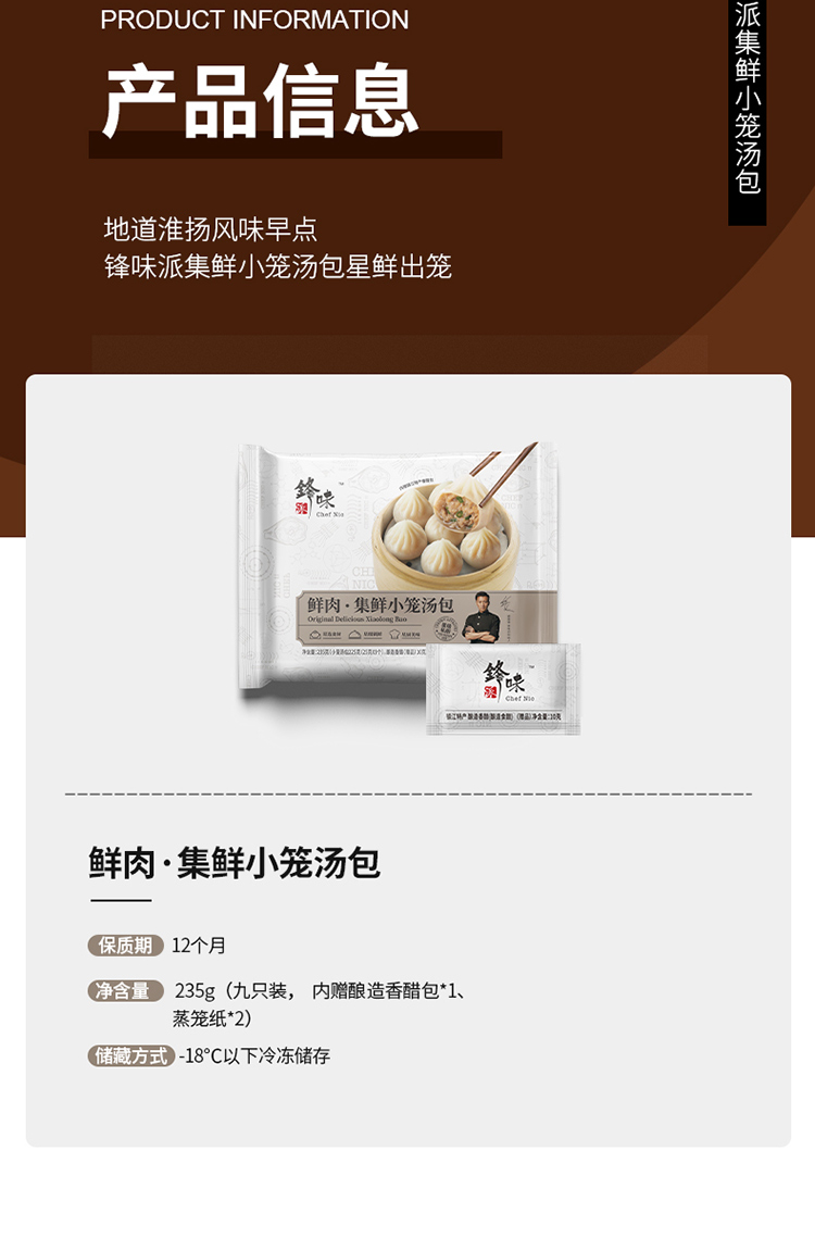 锋味派鲜肉集鲜小笼汤包235g*2袋 拿铁色