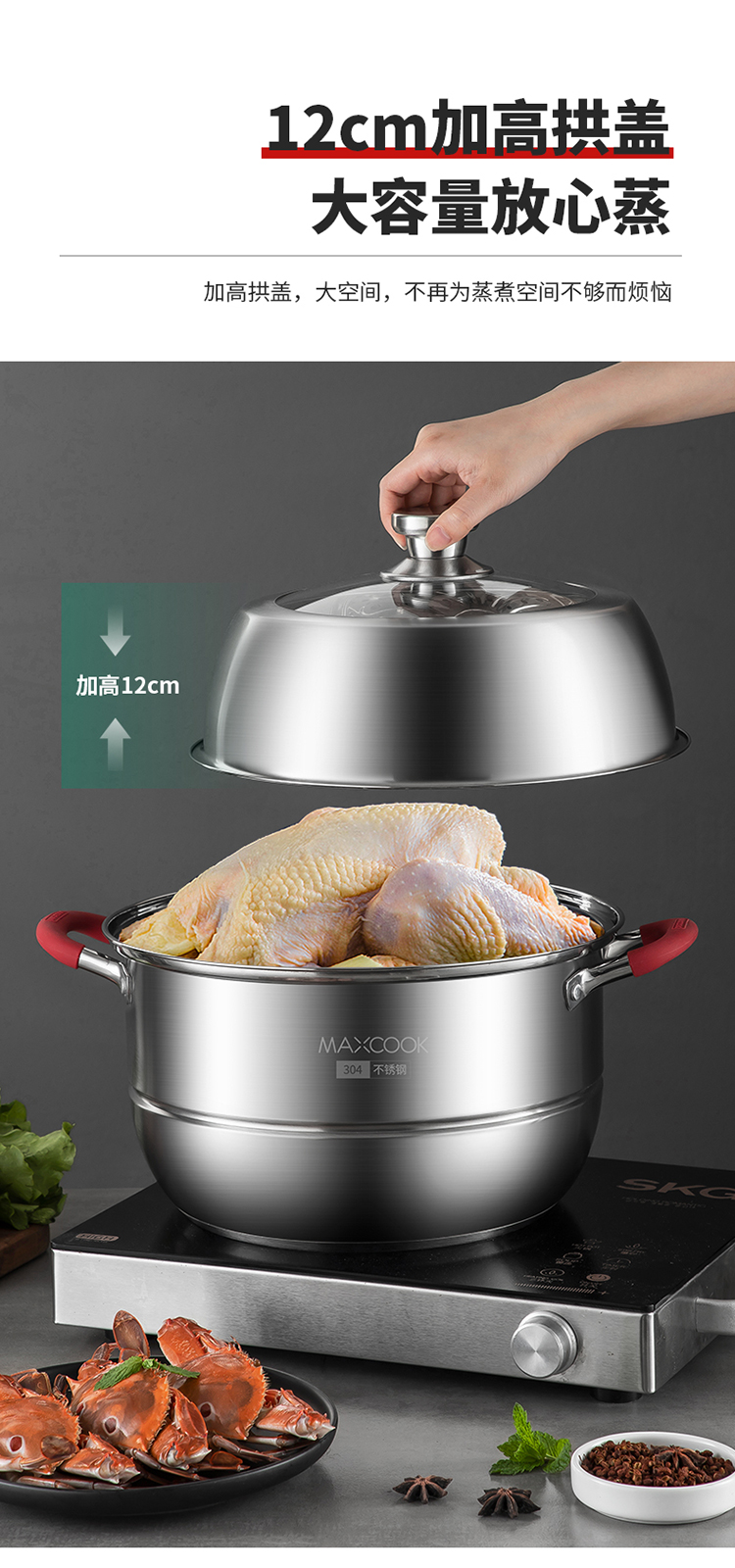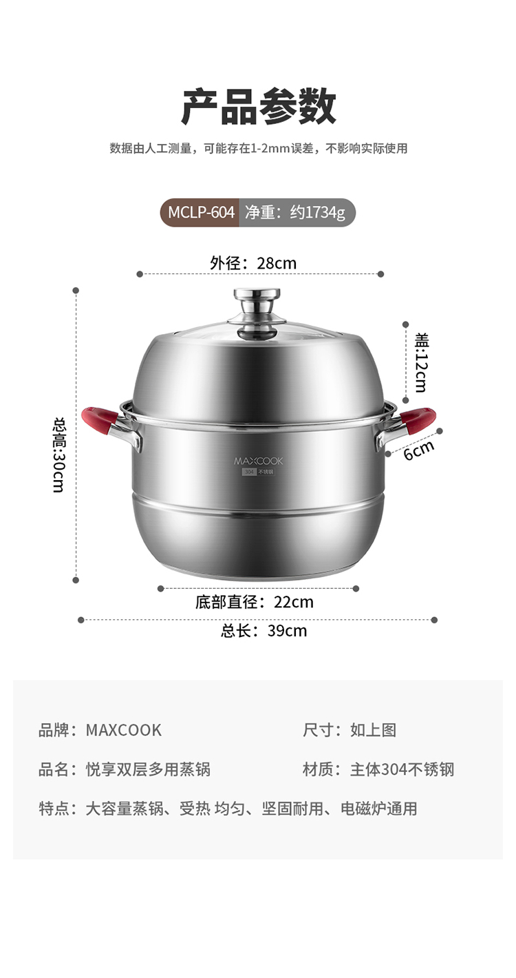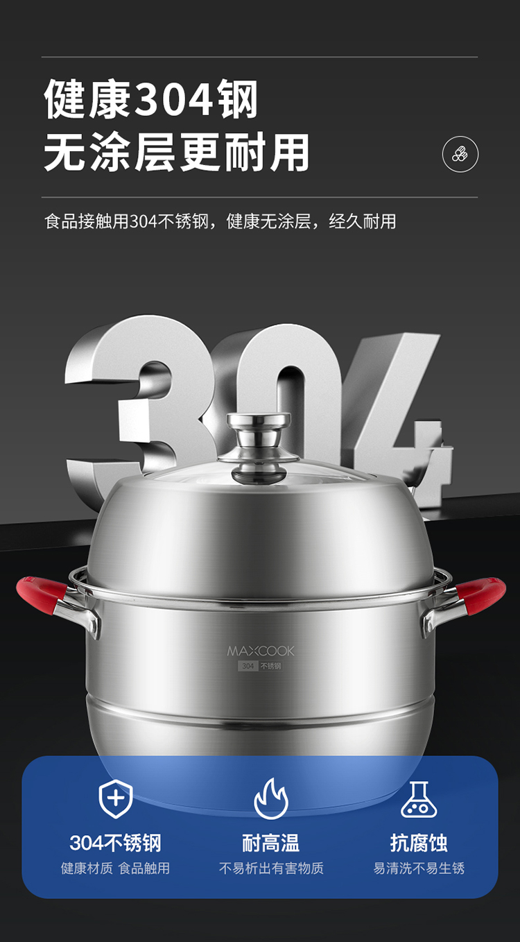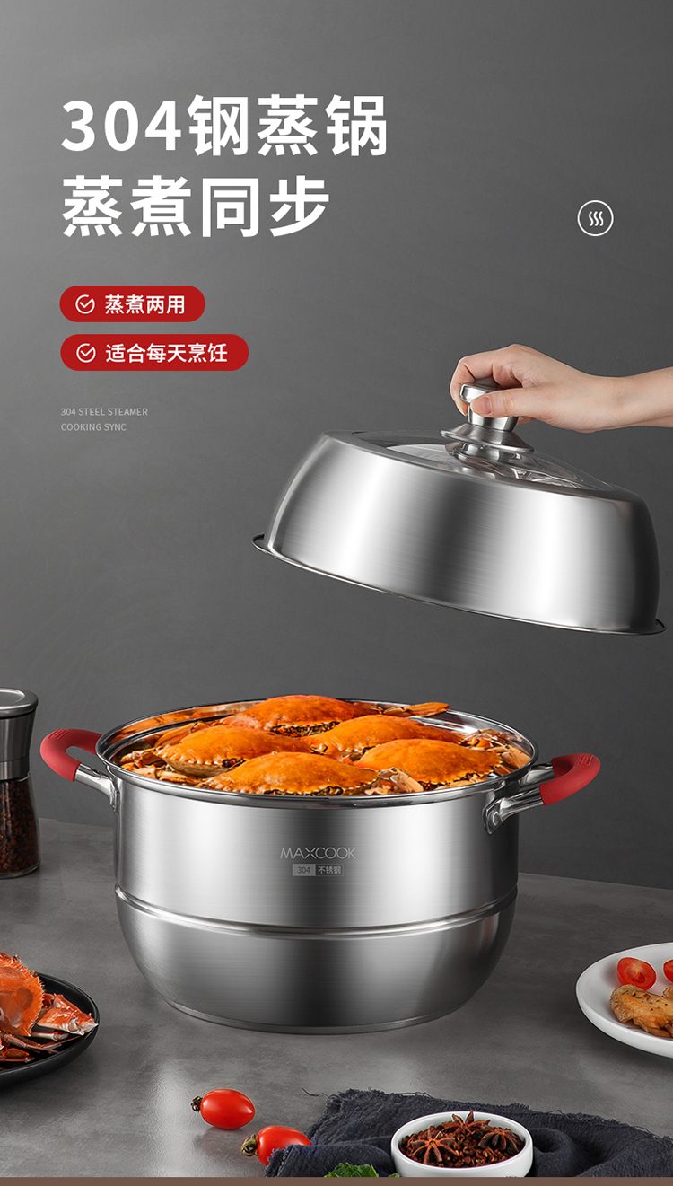 美厨悦享双层蒸锅28cm MCLP-604(单位:套) 不锈钢色