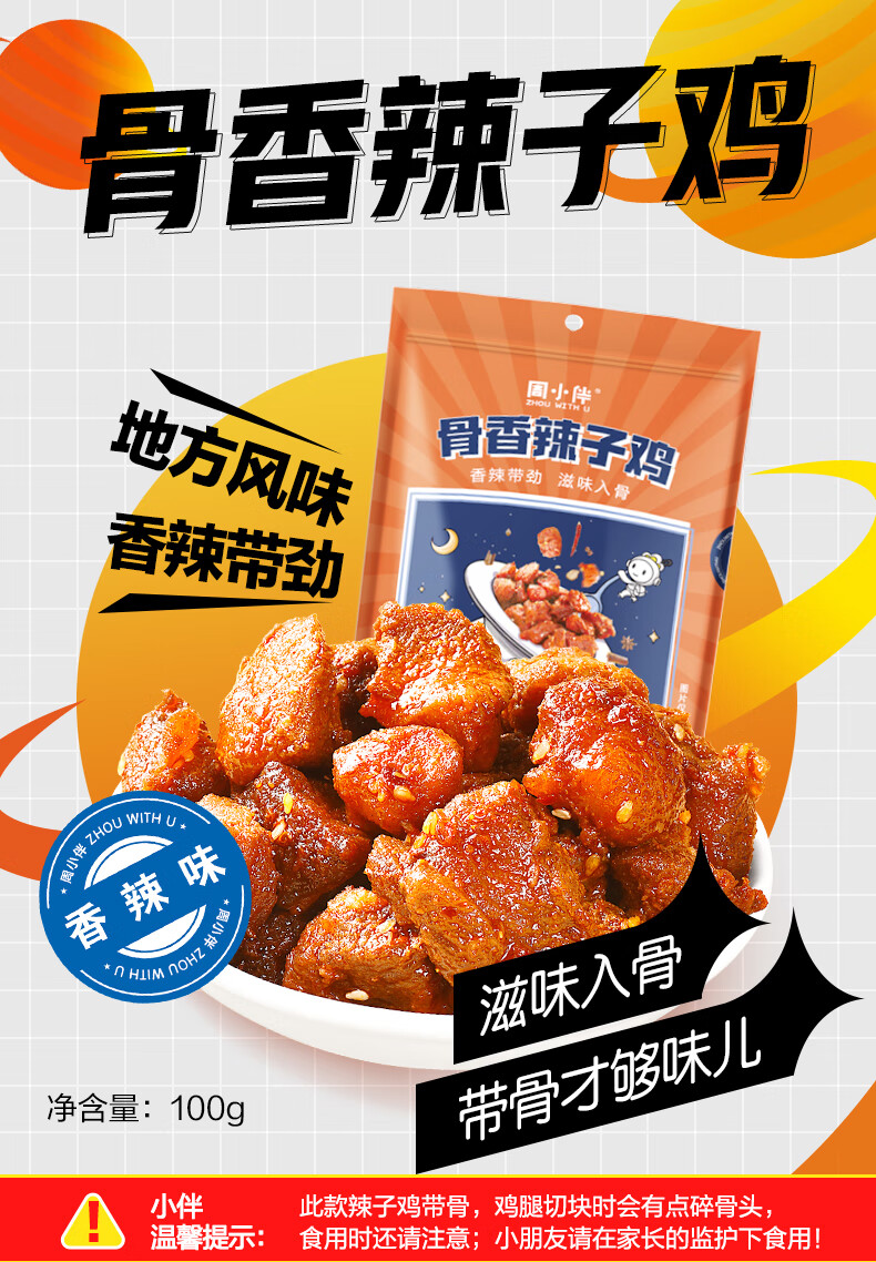 【周黑鸭-周小伴】辣子鸡100g(单位:袋) 黄色