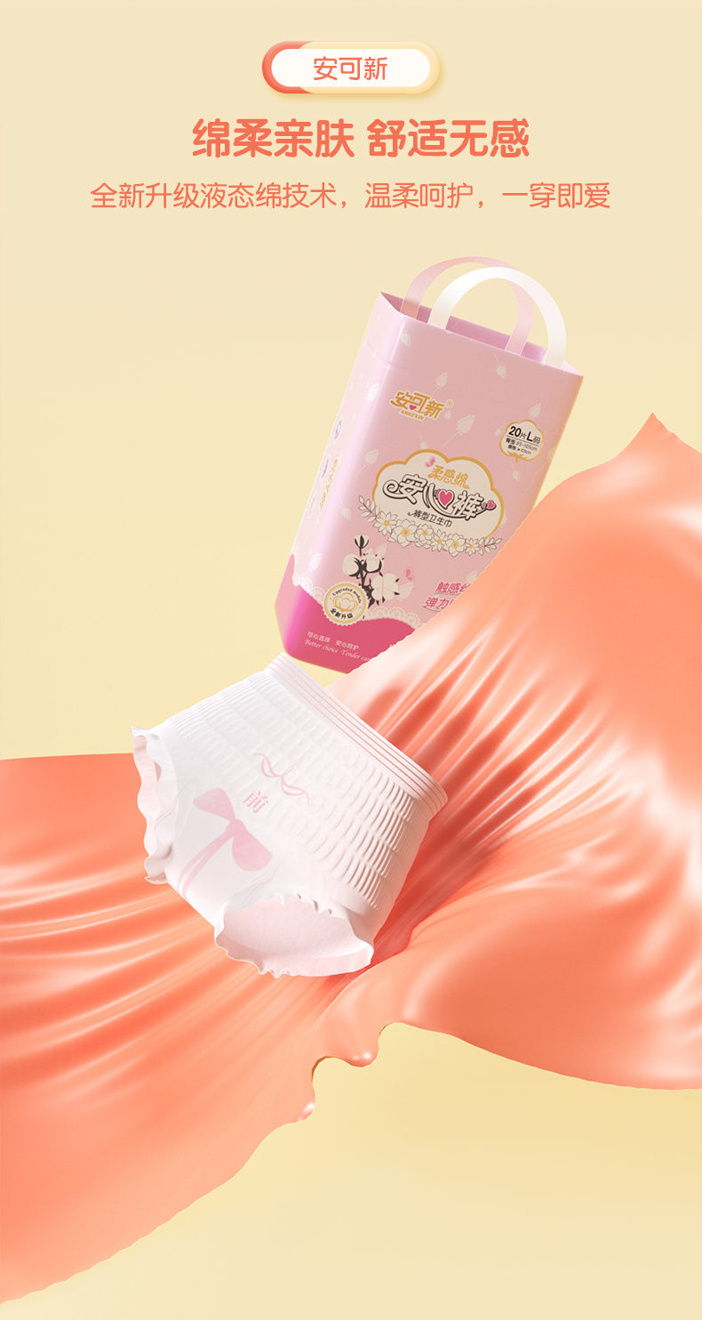 安可新安睡裤棉柔加长夜用姨妈巾奢柔系列20片装XL码*2(单位:包) 茱萸粉