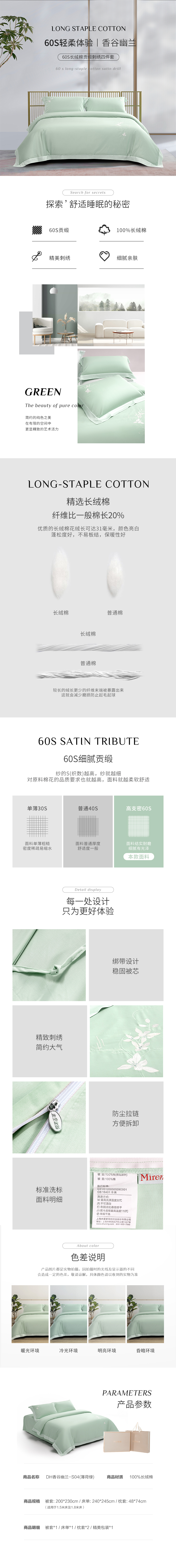 水星家纺 香谷幽兰60S长绒棉四件套(薄荷绿) 200cm×230cm 适用1.5米床(单位:套) 清新色