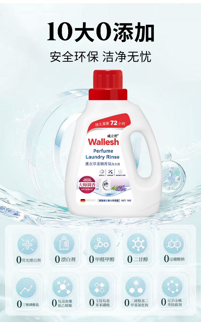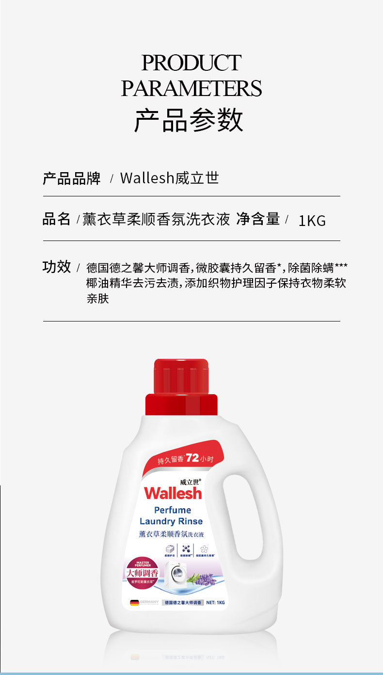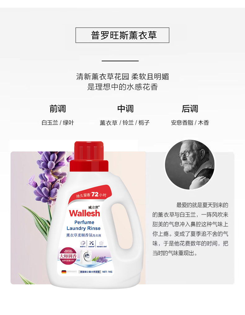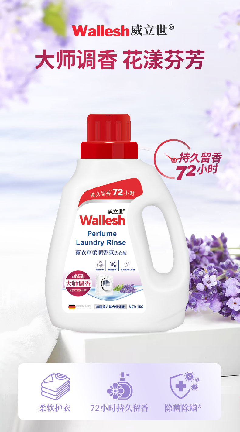 Wallesh威立世薰衣草柔顺香氛洗衣液1KG(单位:瓶) 无色