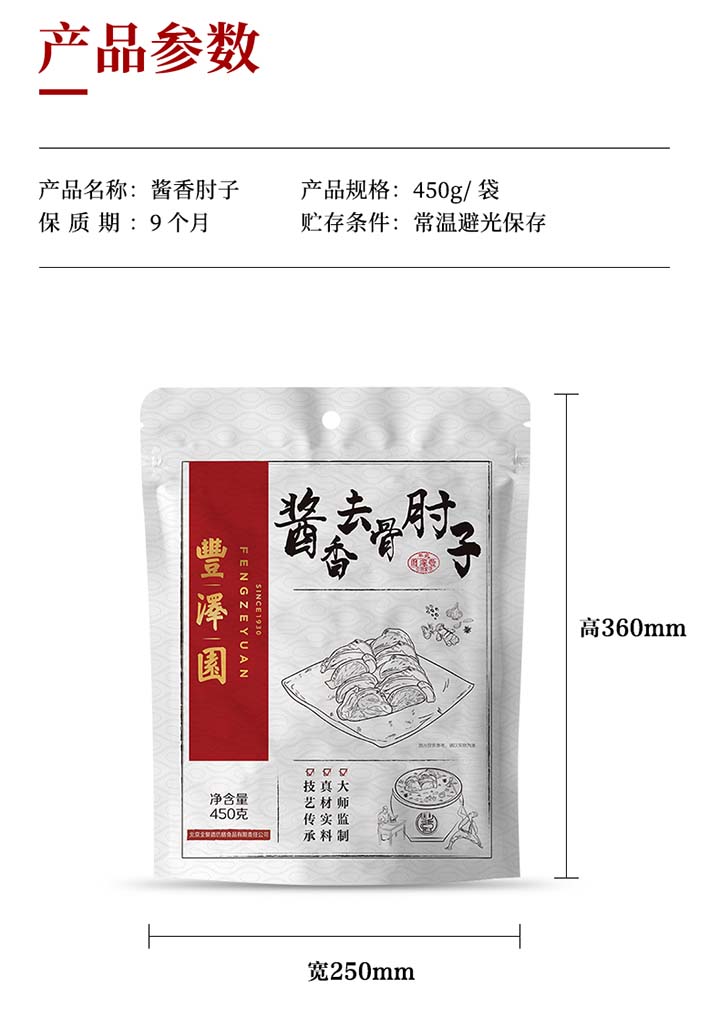丰泽园 酱香去骨肘子 熟食腊味 中华老字号北京特产 方便速食卤肉 450g*3袋 酱香去骨肘子450g*3袋